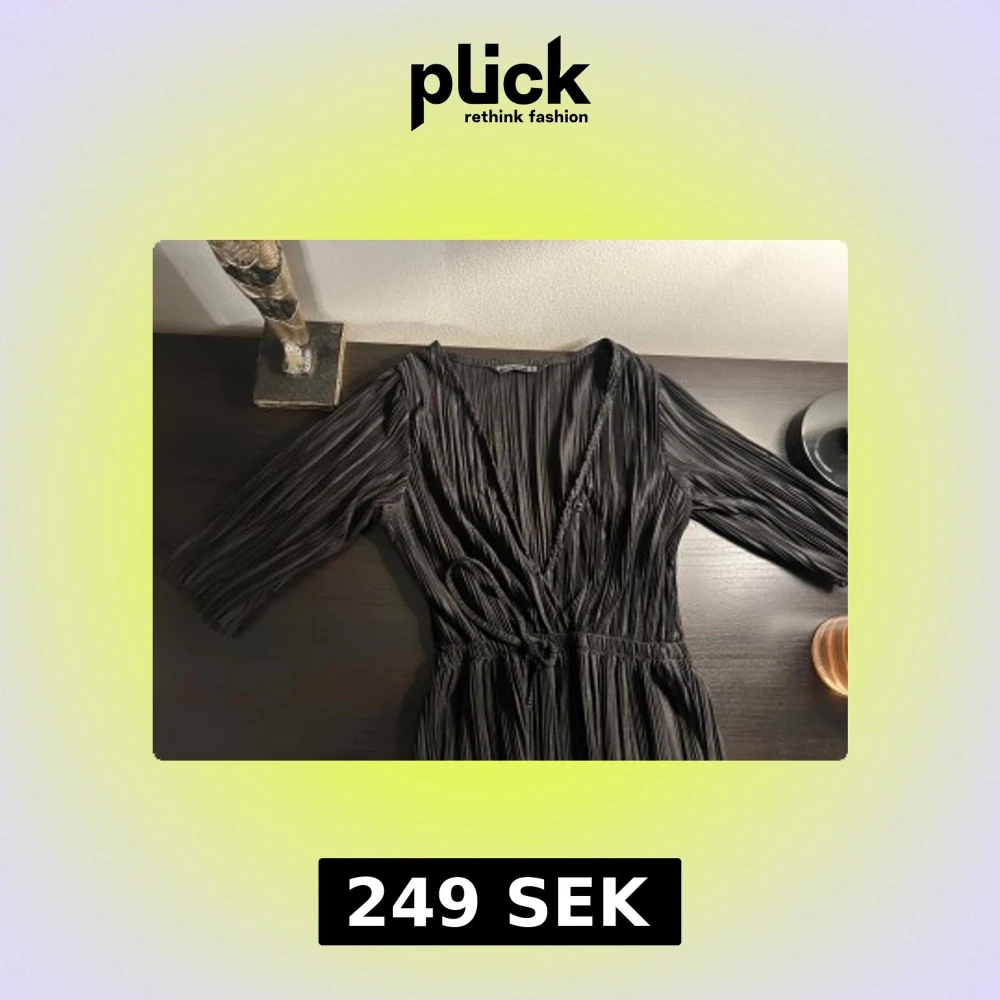 Säljer en svart omlotttopp från Stradivarius i storlek XS. Klänningen har plisserat tyg, trekvartsärm och knytband i midjan för en snygg passform. Perfekt för dig som gillar stilrena och trendiga plagg med cool struktur.
