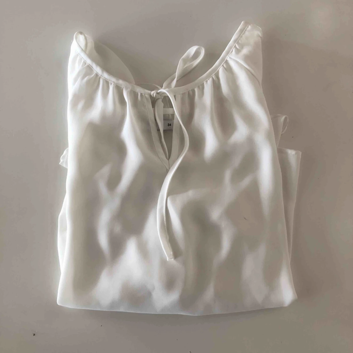 Super skön vit blus med snygg knytning i fram (knyter själv) som tyvärr blivit för tajt på mig runt bysten. Skulle säga att den passar bäst på xs/s. Fler bilder kan skickas!♻️💞
