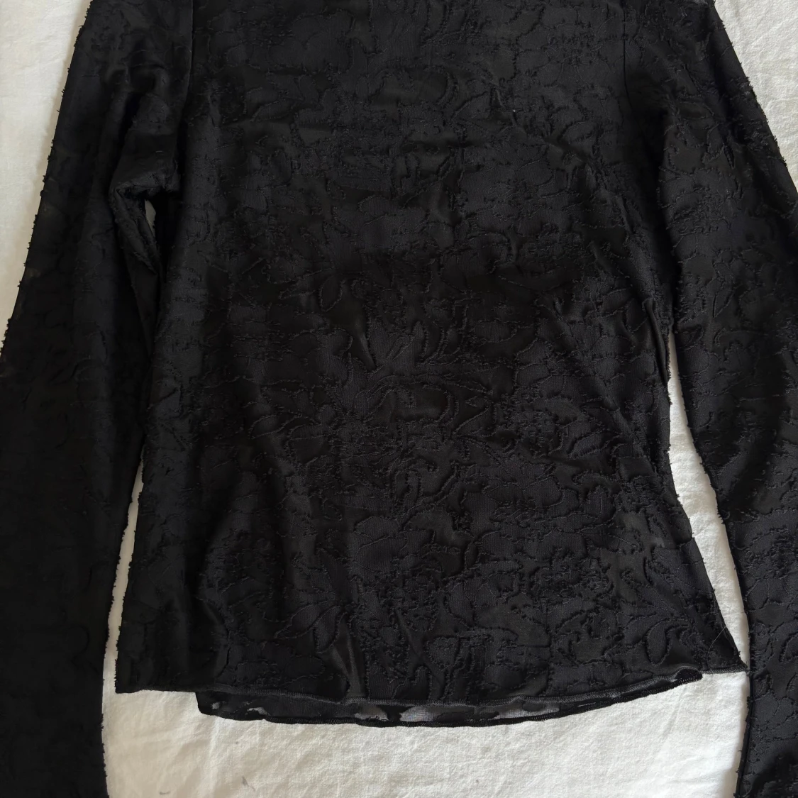 Säljer en svart långärmad topp med subtilt blommigt mönster💖Köpte nyligen