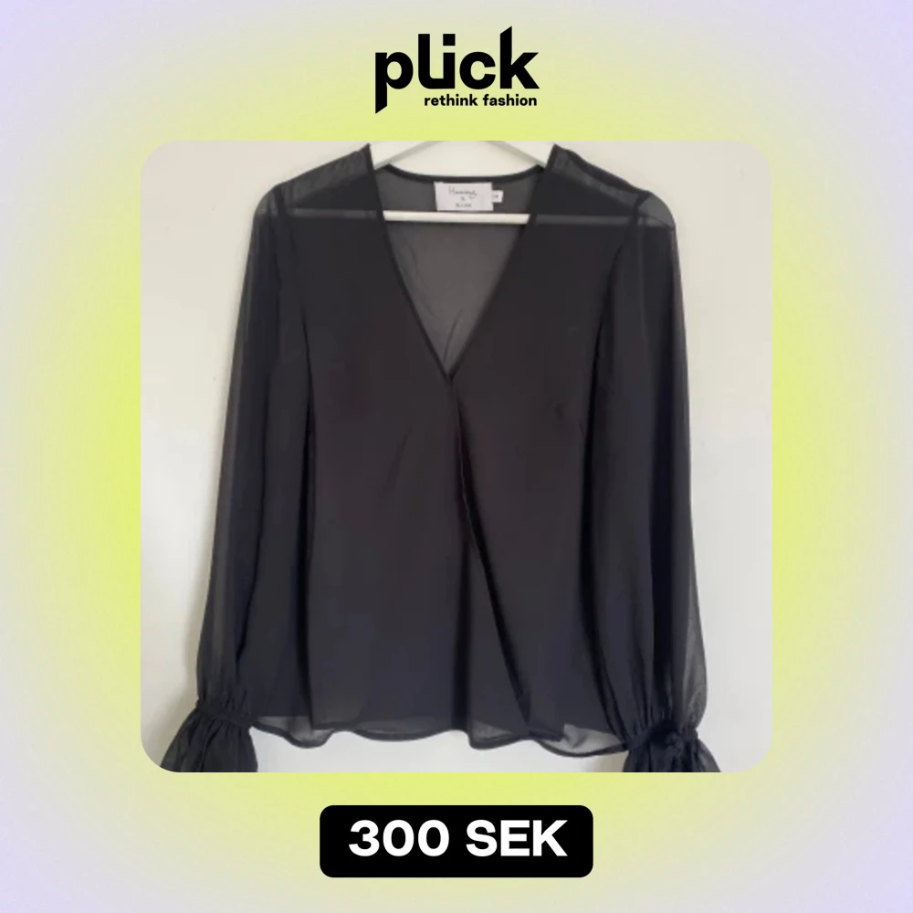 Superfin svart blus från NA-KD x en slutsåld kollektion i storlek 34. Blusen har en omlottdesign i transparent material vilket kan stylas med någon fin topp under! Blusen är helt oanvänd!🫶🏻🎀