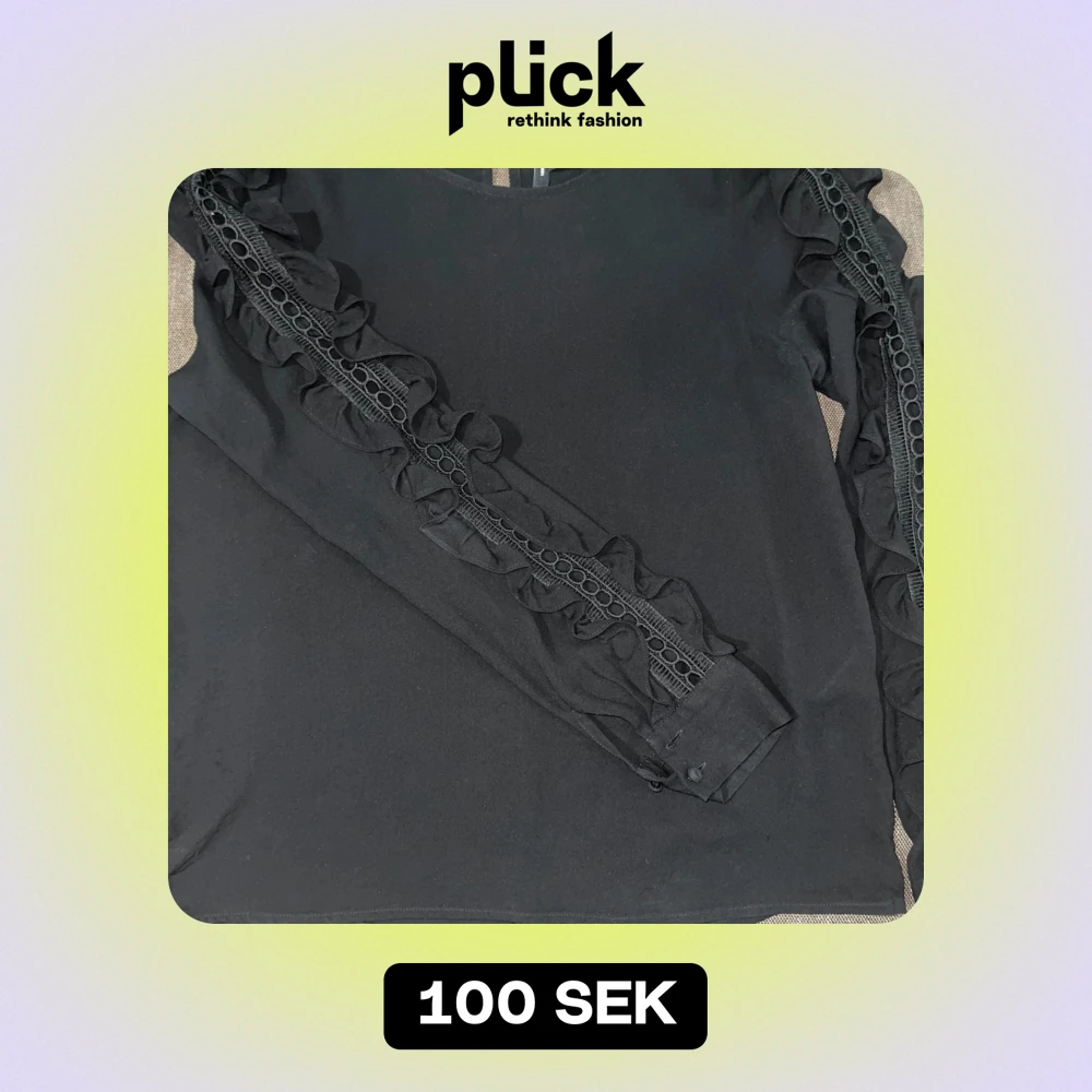 säljer en elegant svart blus med långa ärmar och fina volangdetaljer längs armarna. blusen har en knappstängning bak och är perfekt för både vardag och fest. den är i mycket bra skick och passar till alla tillfällen. (OBS!! vid ena ärmen saknas 1 av 2 knappar, men det funkar att knäppa ärmen precis lika bra)❤️