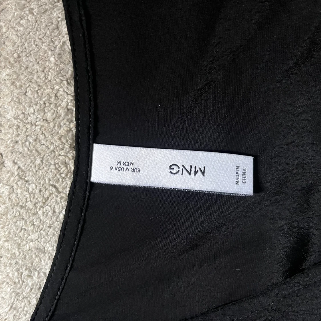 Svart blus från MNG med v-ringad hals och dekorativa knappar framtill. Blusen har en flowy siluett och är tillverkad i ett mjukt, glansigt material som ger en elegant känsla. Perfekt för dig som gillar stilrena och enkla plagg med snygga detaljer.