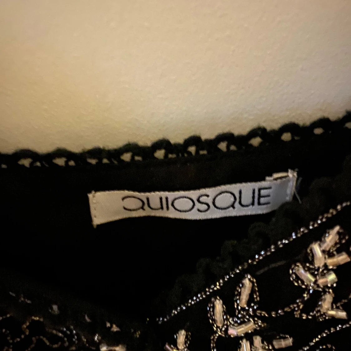 Elegant svart lång top från Quiosque med vackra spetsdetaljer och broderier på överdelen. Toppen har breda axelband och en lätt utsvängd kjol. Perfekt för en stilfull kväll.