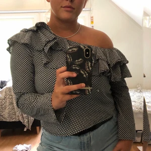 One-shoulder topp från NA-KD i svart-vitt mönster. Använd 2 gånger och är som ny. Är storlek 38 men skulle snarare säga att den passar en S (och eventuellt M). Har ni frågor eller funderingar är det bara höra av sig. Köparen står för frakt 🚚.