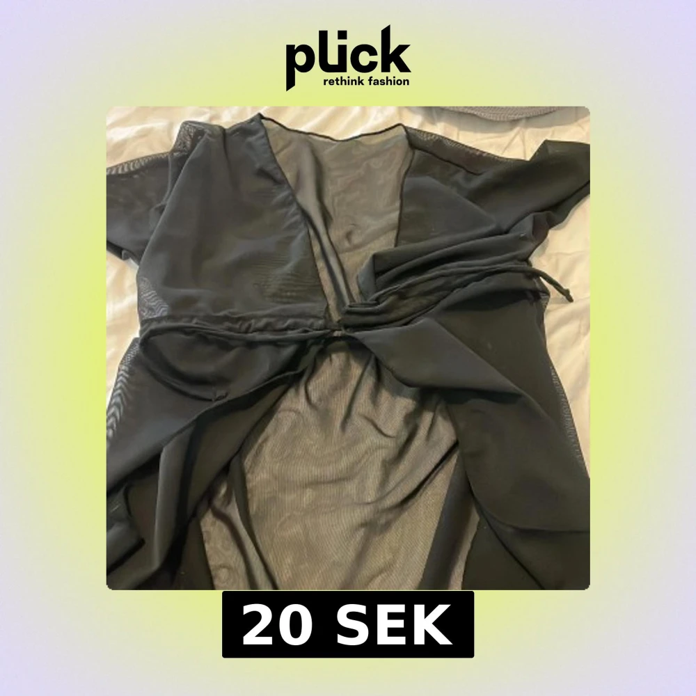 Snygg svart omlottklänning i tunn mesh med knyt i midjan. Klänningen har v-ringning och är genomskinlig, perfekt för lager på lager eller över badkläder. Stilren och enkel att styla till olika looks.