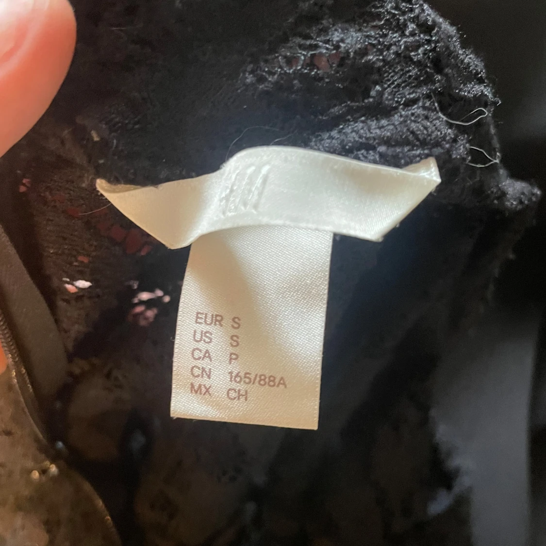 Säljer en svart, transparent spetsblus från H&M i storlek S. Blusen har lång ärm, hög hals och är helt täckt av blommig spets. Perfekt för dig som vill ha en edgy och snygg look med lite extra detaljer.