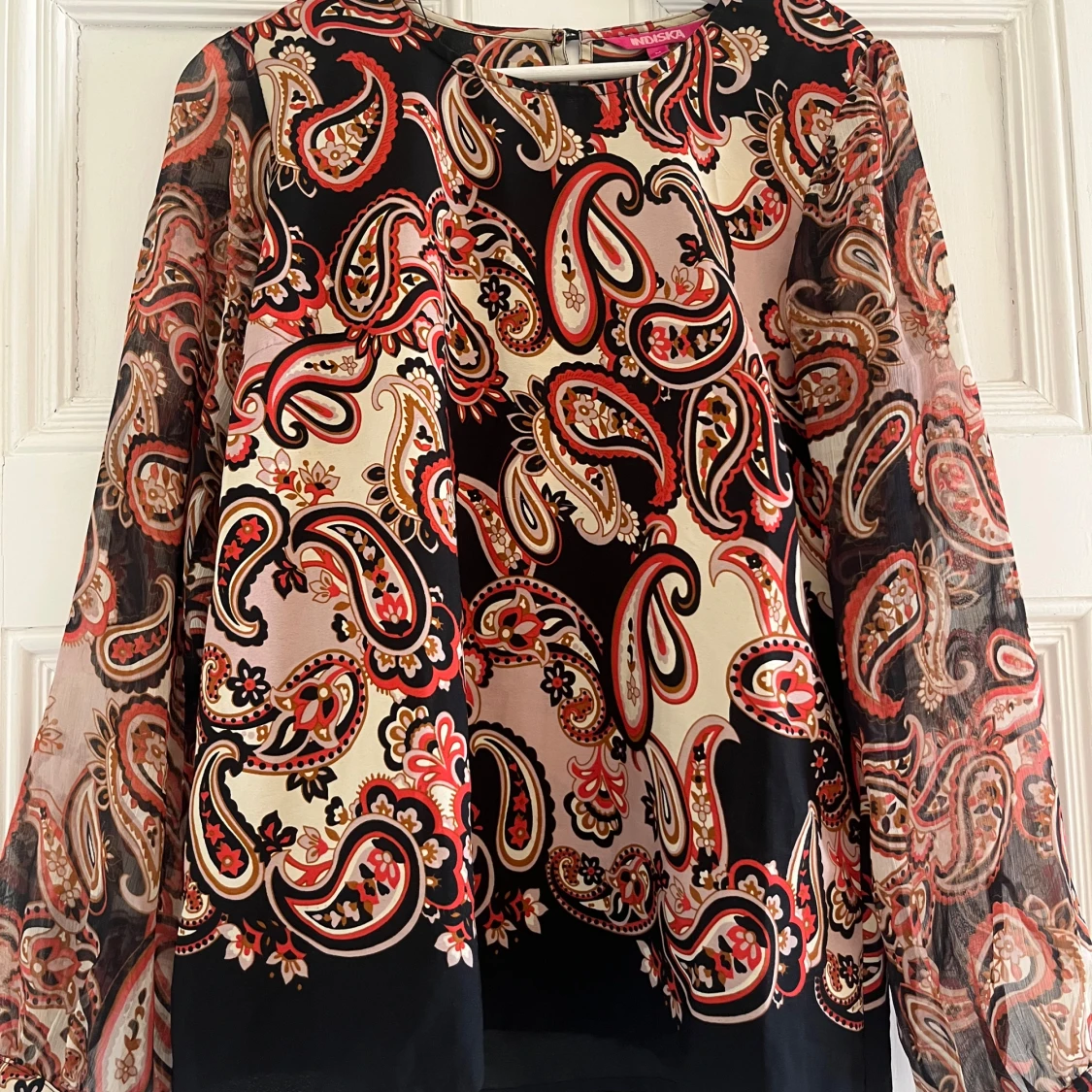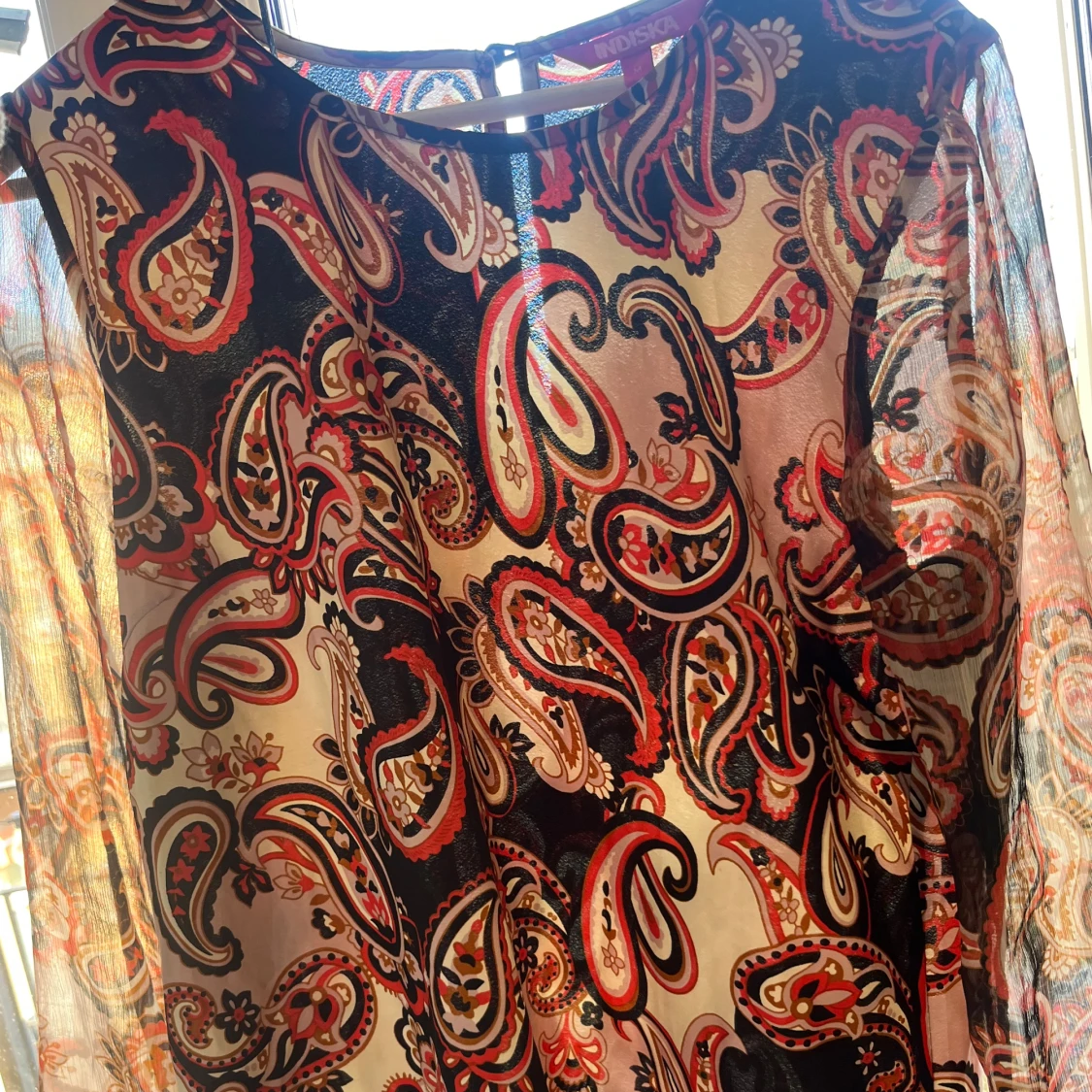 Superfin blus/topp från Indiska! Armarna är lite emr genomskinliga en resten❤️❤️Väldigt bra skick! Passar superbra till middagar😍