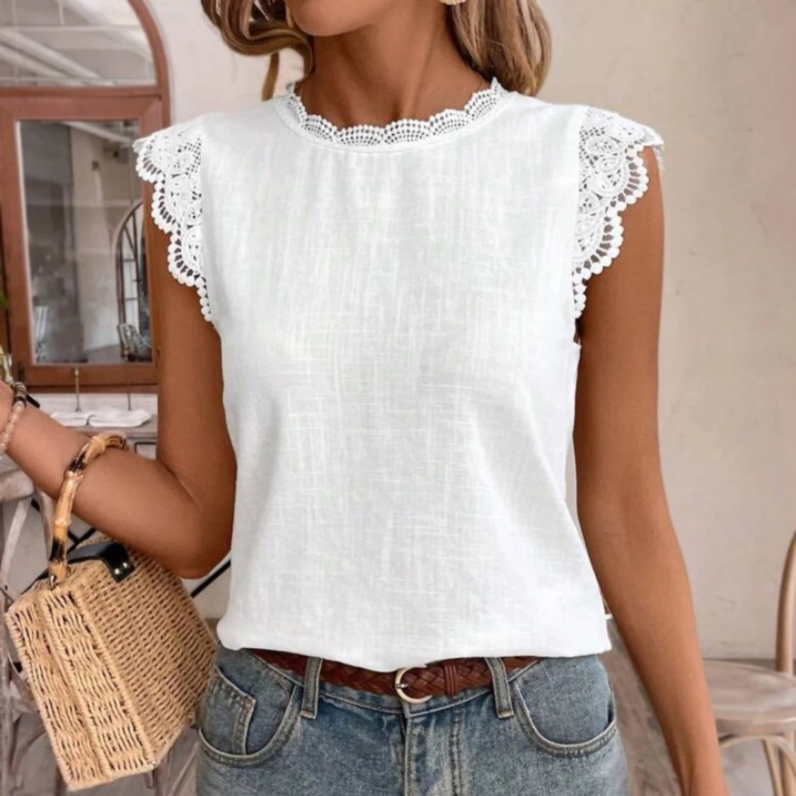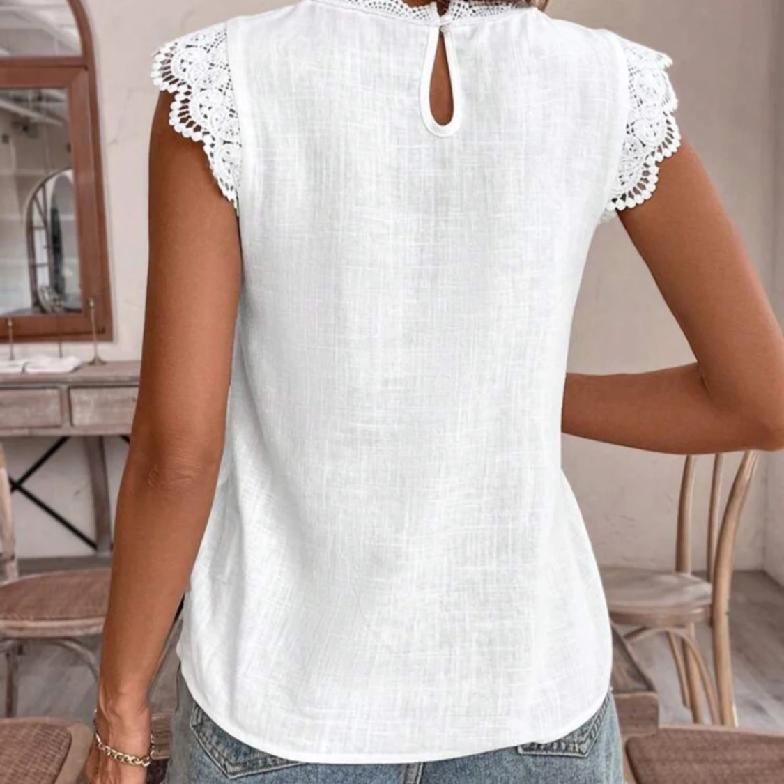 Verkligen såååå fin! En linne blus/topp med lite spets på sidan. Aldrig använd då den var liten i storleken, passa S och M