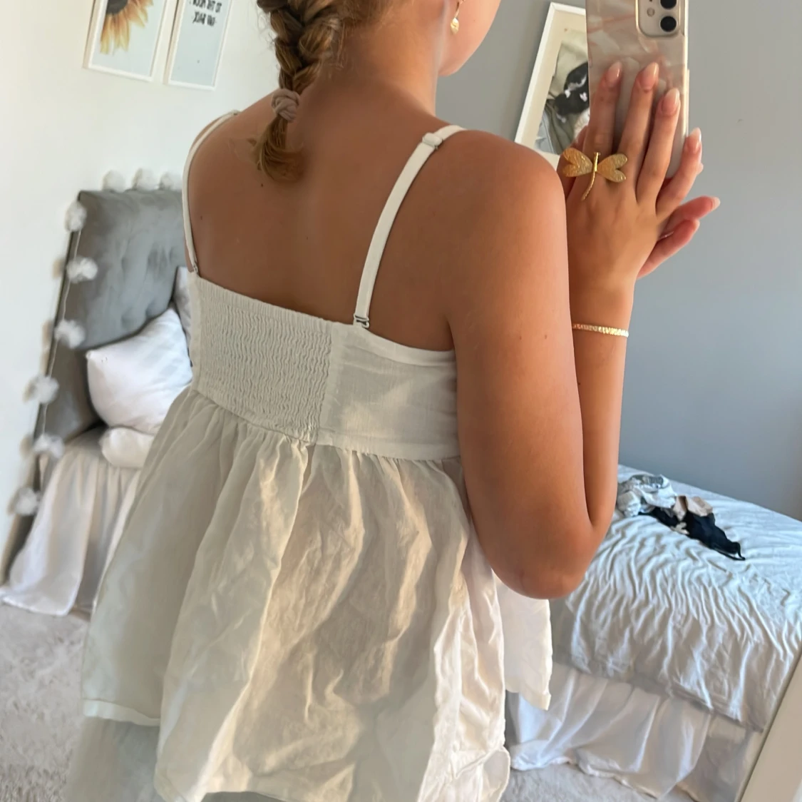 Vit linnetopp med justerbaraband. Använder inte ofta så säljer därför.