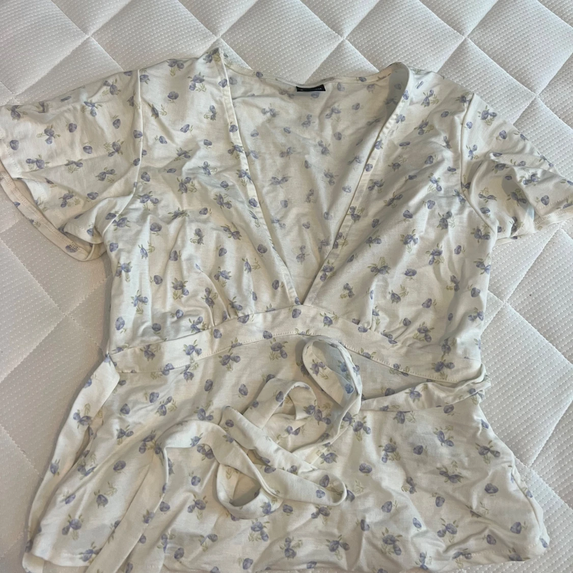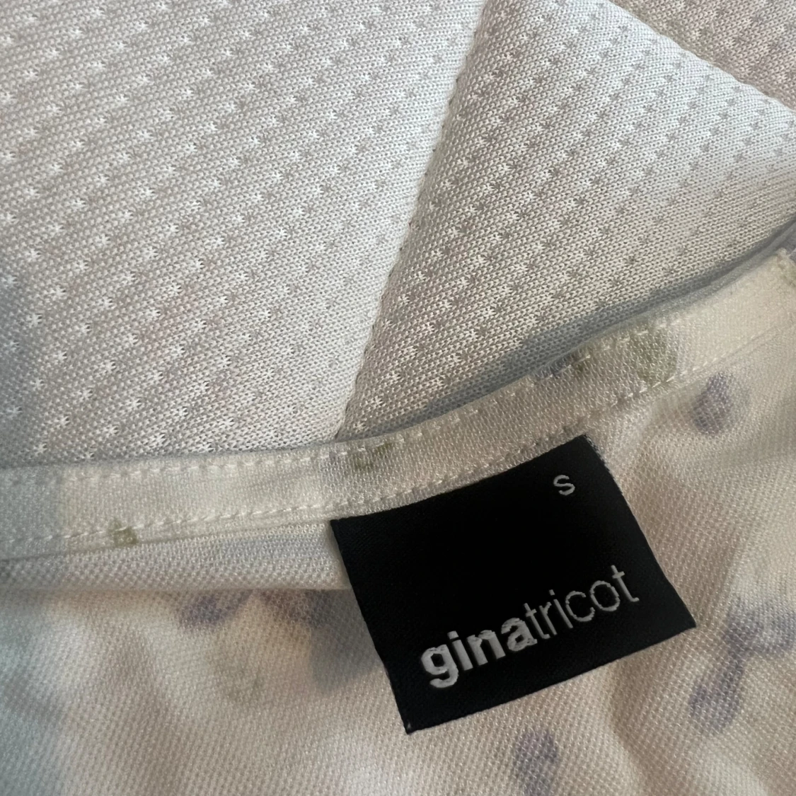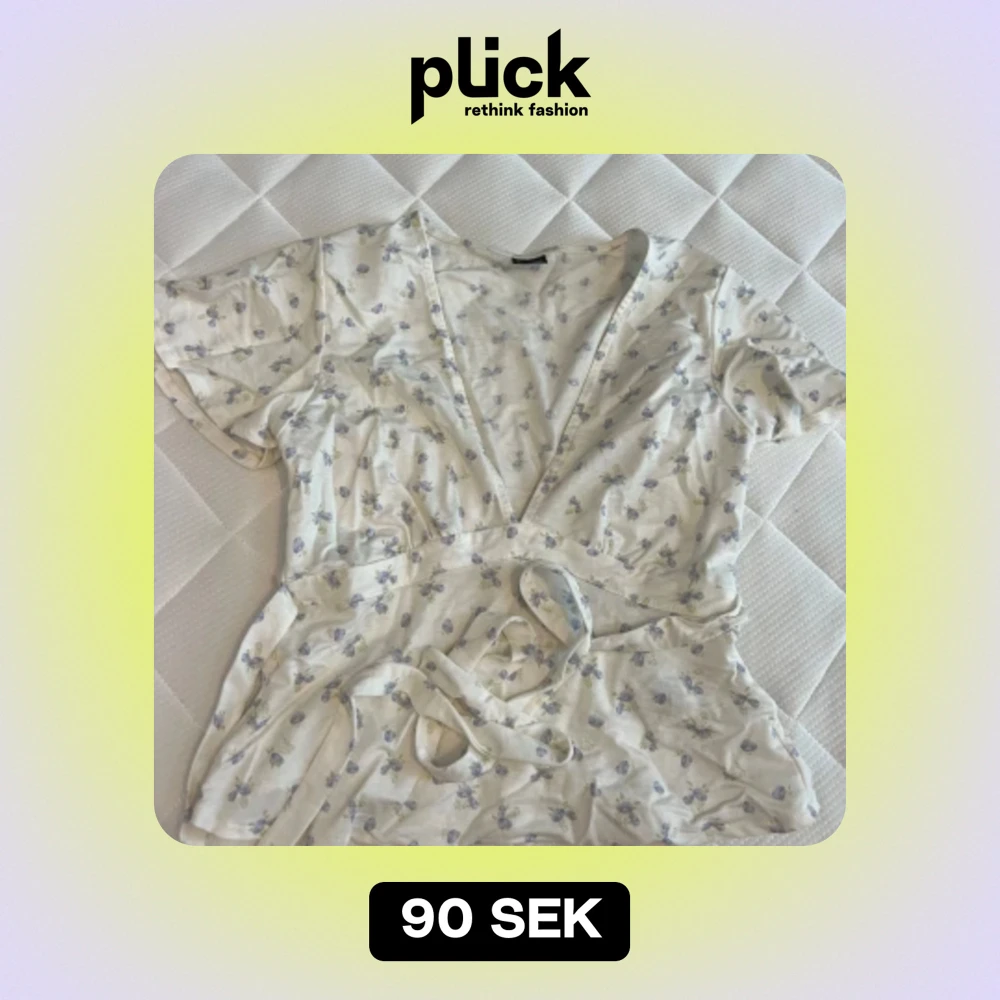 En vit topp med blommor från Gina! Den har som två ”snören” (se bild) som man kan välja att knyta antingen framifrån eller bakifrån. Supersöt!🫶🏼