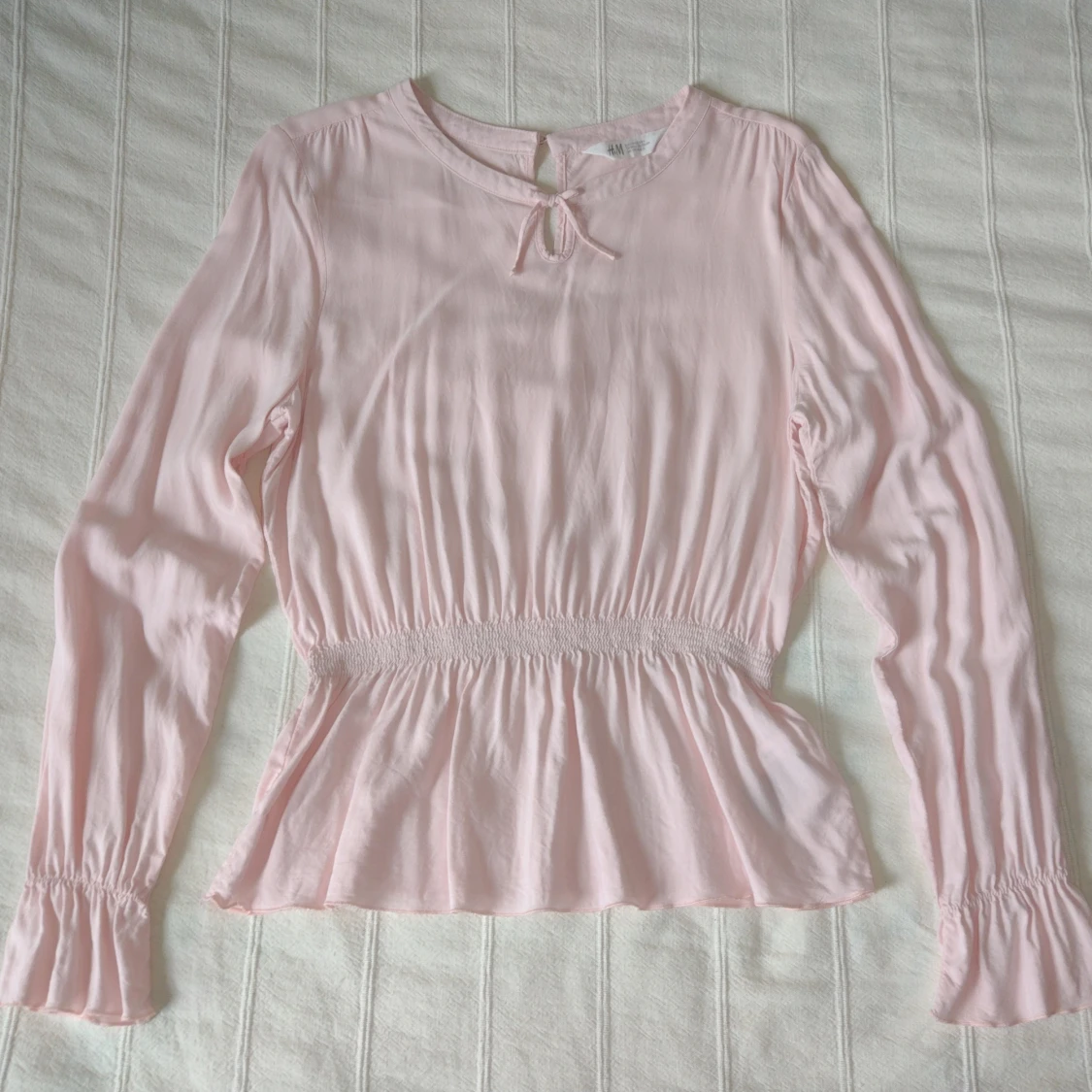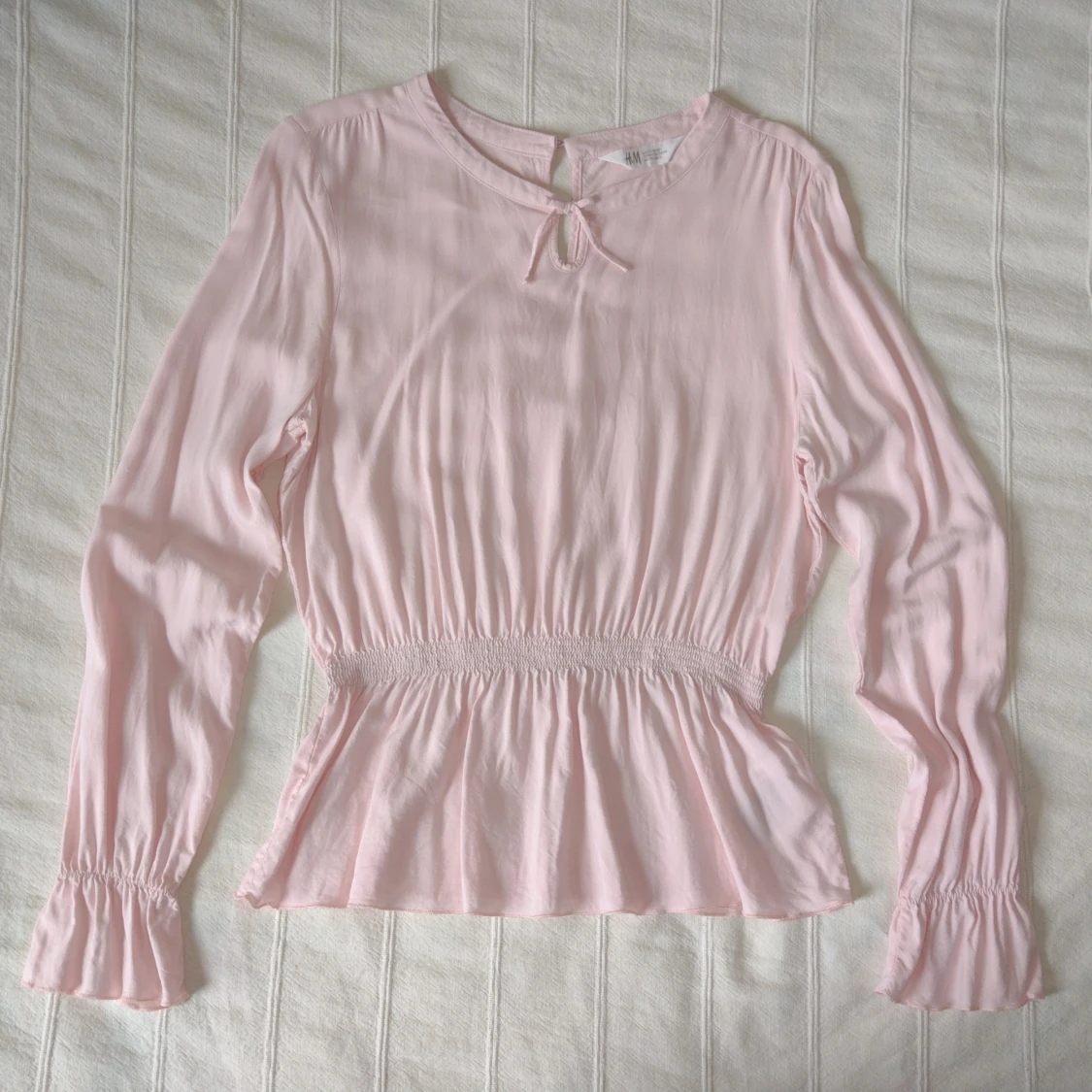 Rosa blus med "volang". Bara använd en gång och i fint skick. Storlek 170 (är som storlek XS). Mjuk och skön, med resår. 100% viskos.