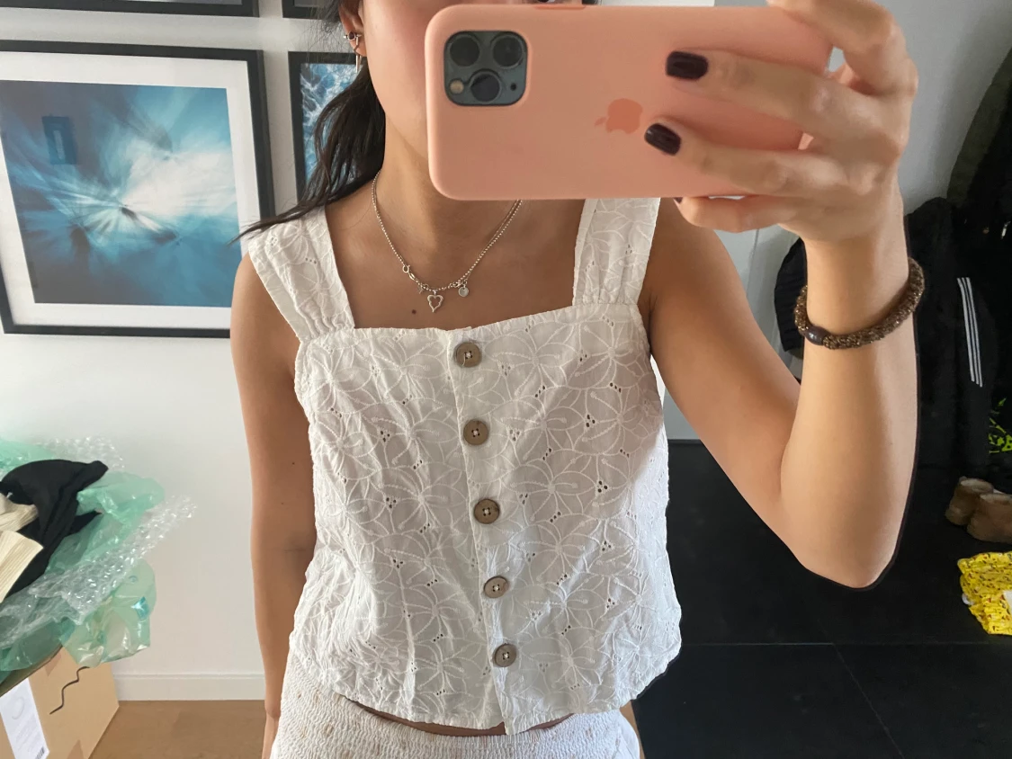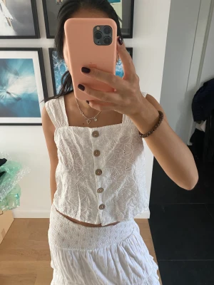 Säljer denna jätte fina linne topp från Zara med bruna knappar i storlek S. 💕💕 Köparen står för frakt.