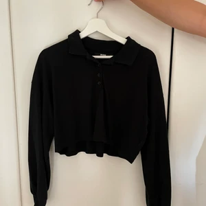 En superfin svart croppad långärmad top från Bik Bok med några knappar framtill. Använd en gång. Strl S. Köparen står för frakten.
