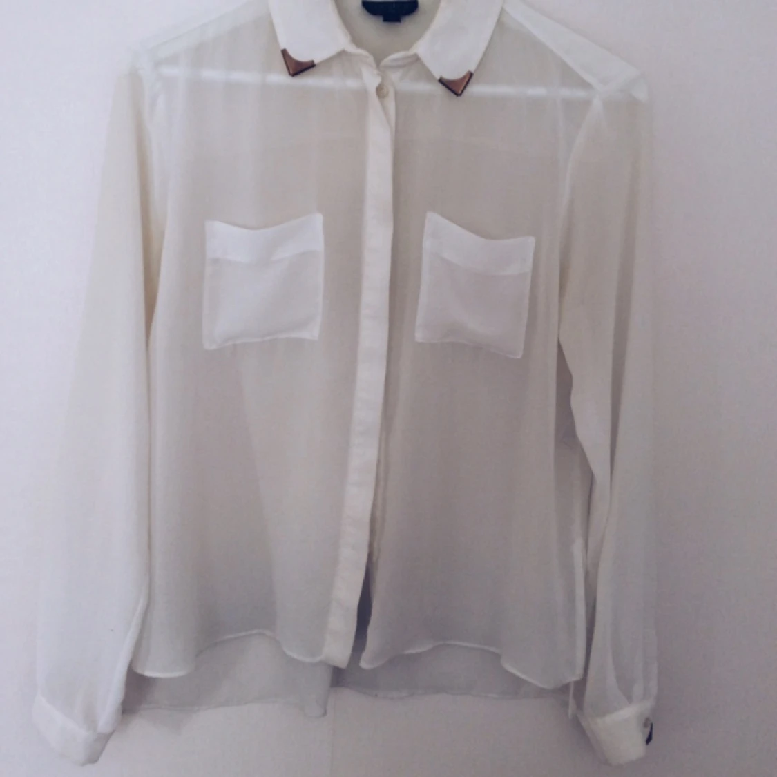 Fin transparent skjorta/blus i vitt från Top-shop med guld detaljer kring krage och ärmar. Möts gärna upp i sthlm vid intresse!