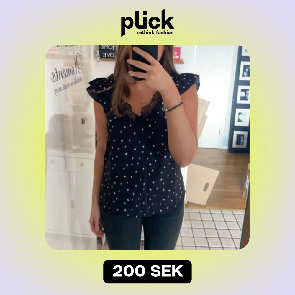 Jättesöt svart blus med vita hjärtan och spets detalj vid urringningen. Storlek S men skulle säga att den även passar M. Öppen för prisförslag 💗