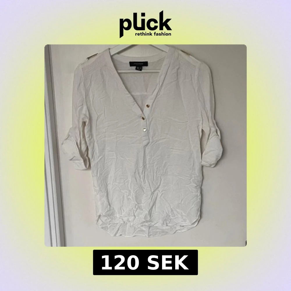 En vit lös blus med halva harmar och snygg guld detalj.