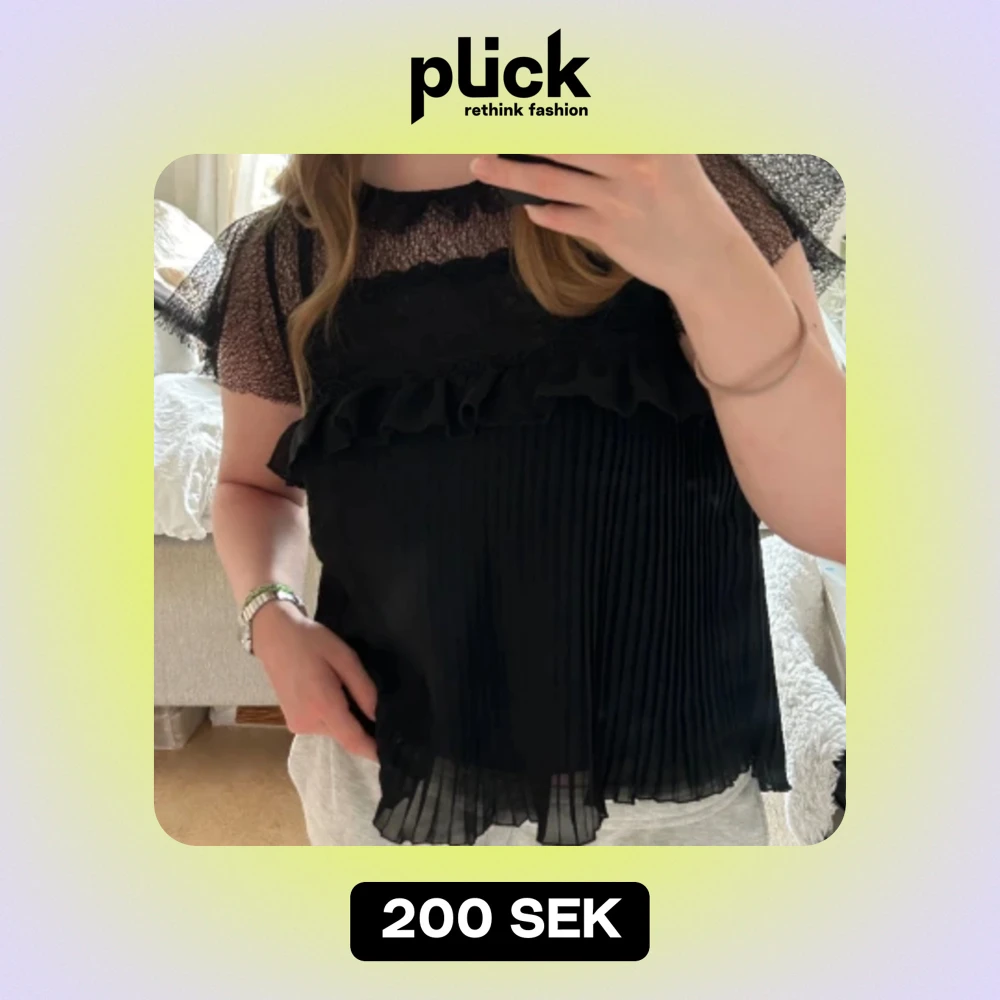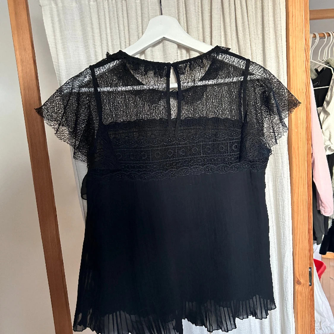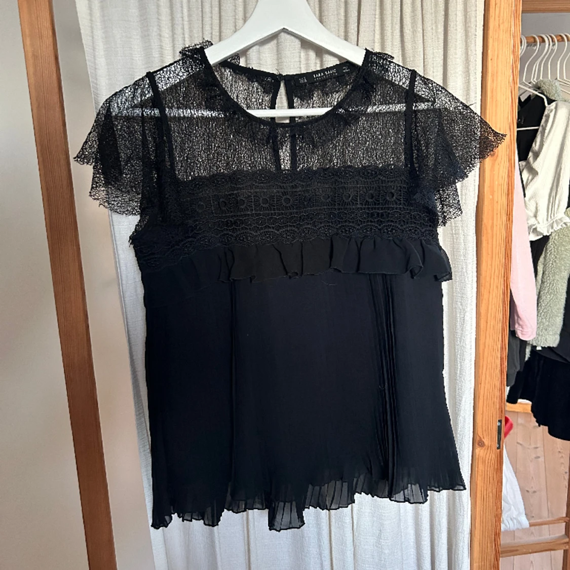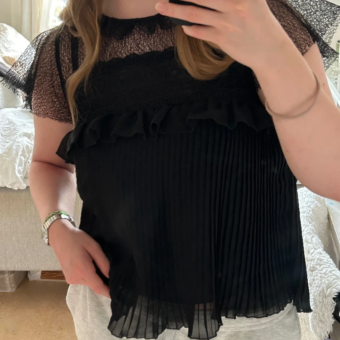 Svart blus med volanger och spets Storlek S