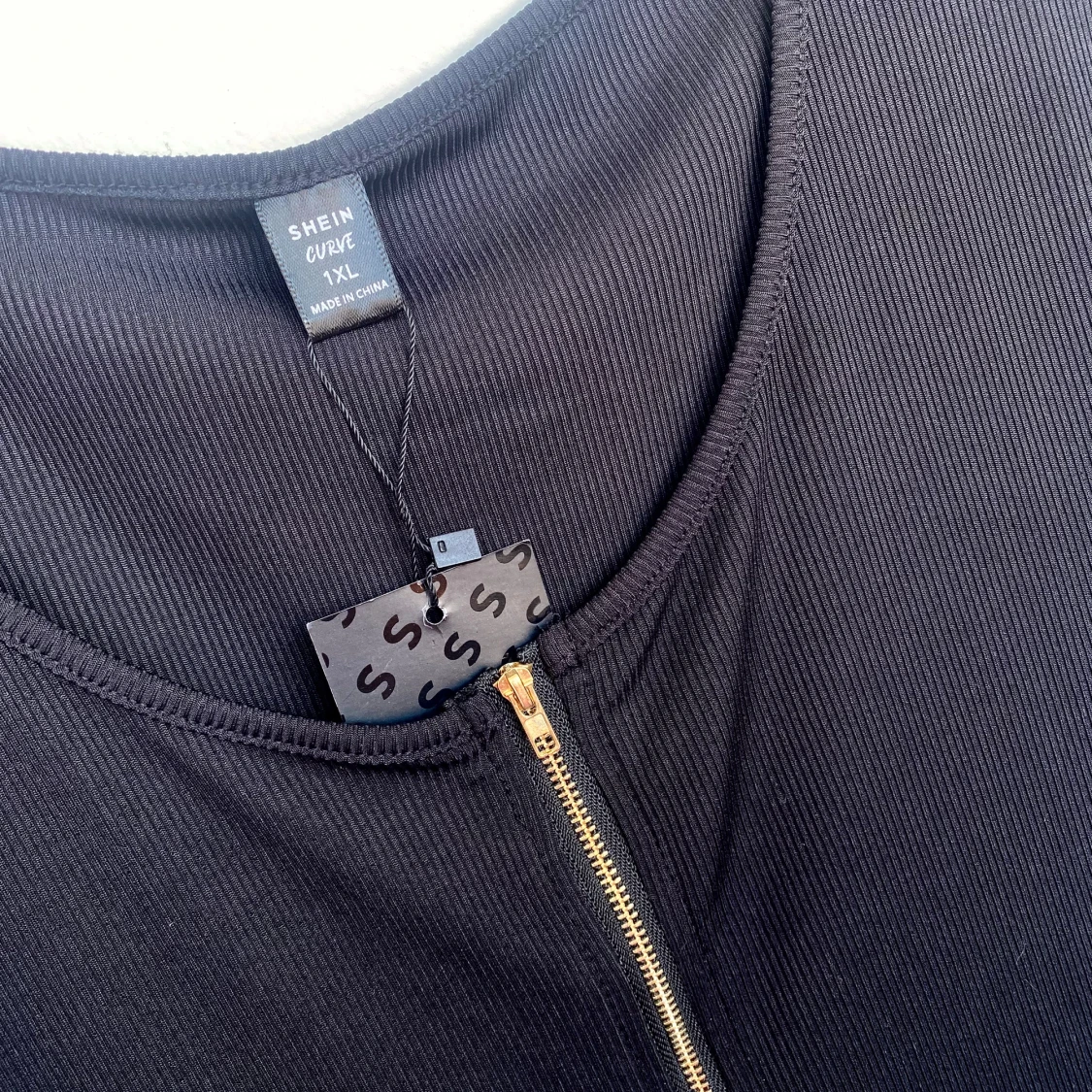 Oanvänd svart tunika köpt på Shein, Curve avdelningen. Otroligt stretchig och skön i materialet. Söm i midjan och dragkedja vid bröstet.