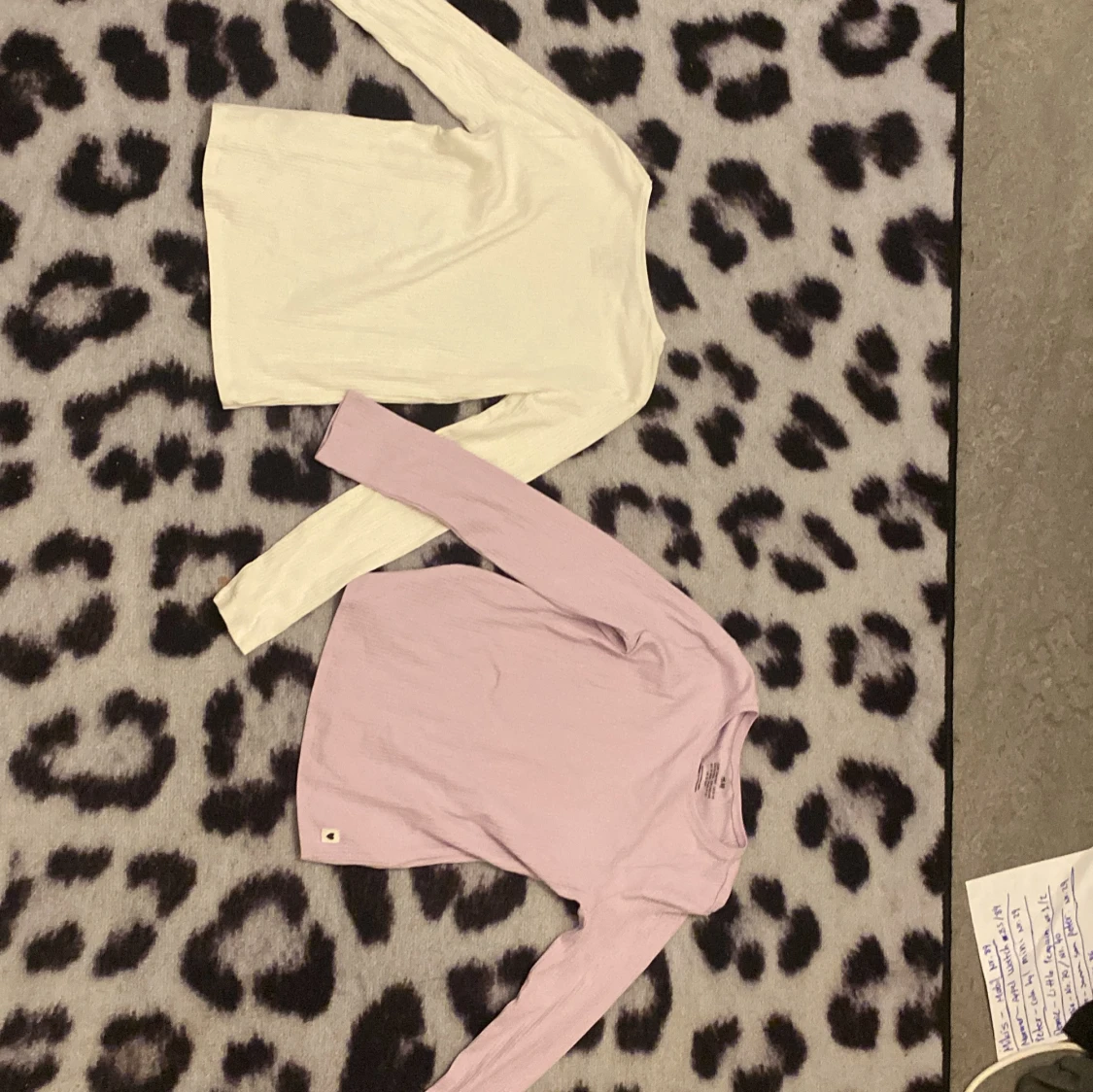 2 fina tröjor i vit och lila, fint och rent skick, inte trasig, använd ungefär 2-3 gånger. Pris går att diskutera. 100 för båda eller 60 för en.