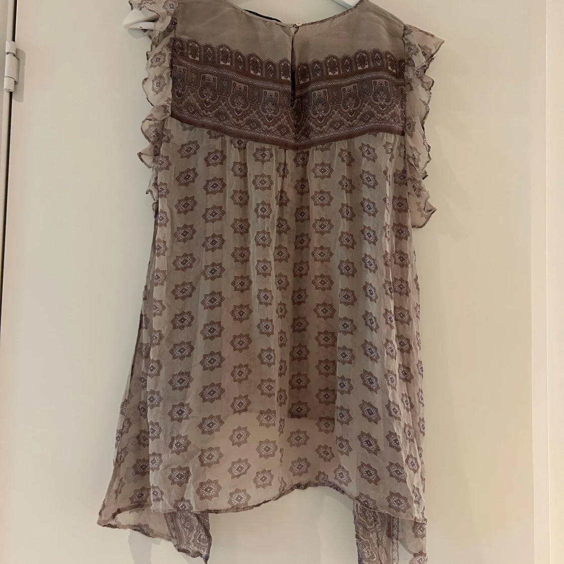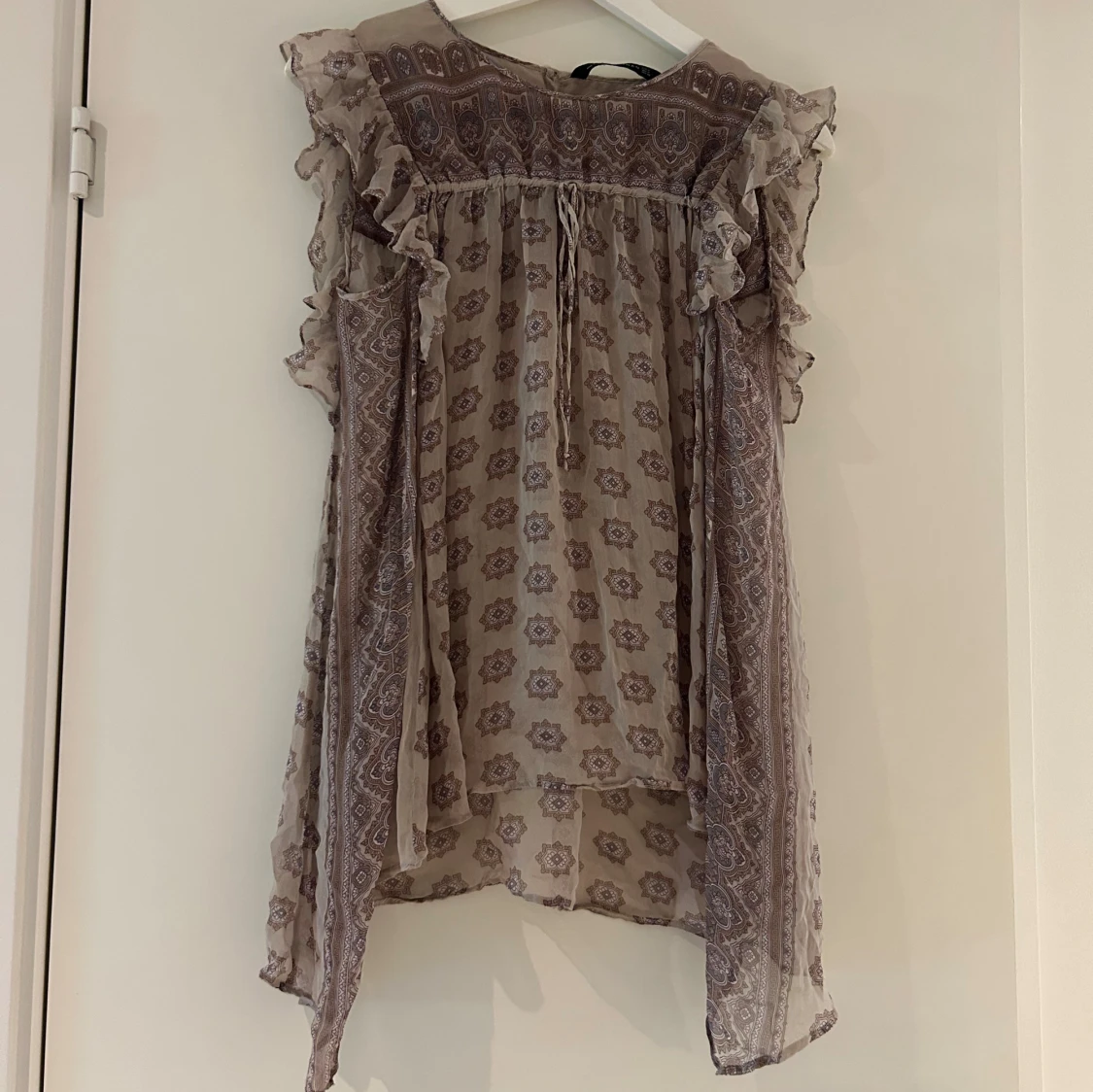 Säljer denna snygga och unika blus från Zara eftersom den inte är min stil. Ganska genomskinlig, använd några gånger men ändå bra skick. Skriv för fler bilder 💓