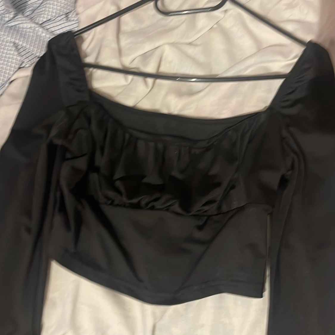 Svart långärmad tröja, skön, bra kvalitet, visar brösten,