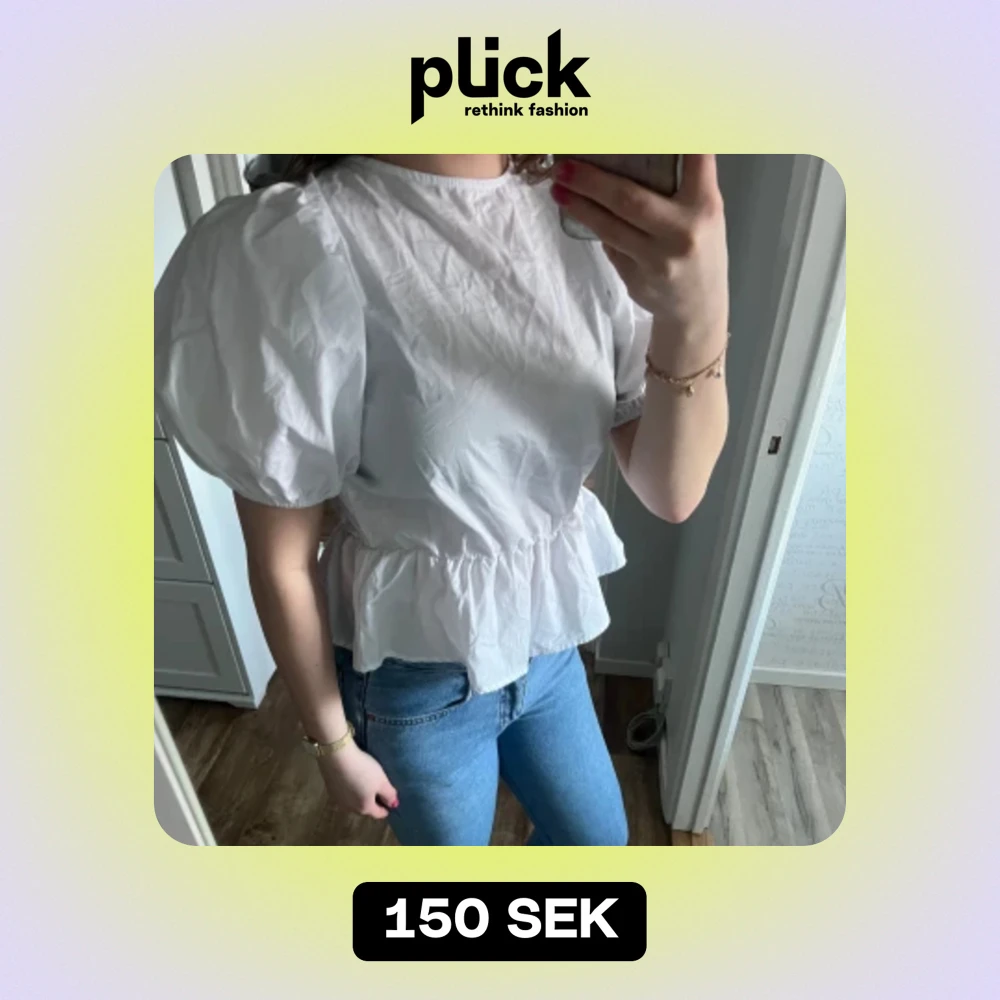 Blus  - En jättefin vit blus från Nelly, säljer då den är lite för stor för mig🤍