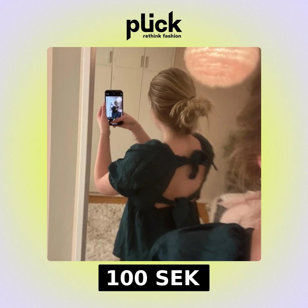 Säljer en stilren mörkgrön topp med knyt i ryggen. Toppen har en fyrkantig urringning och puffiga trekvartsärmar. Perfekt för en chic look!