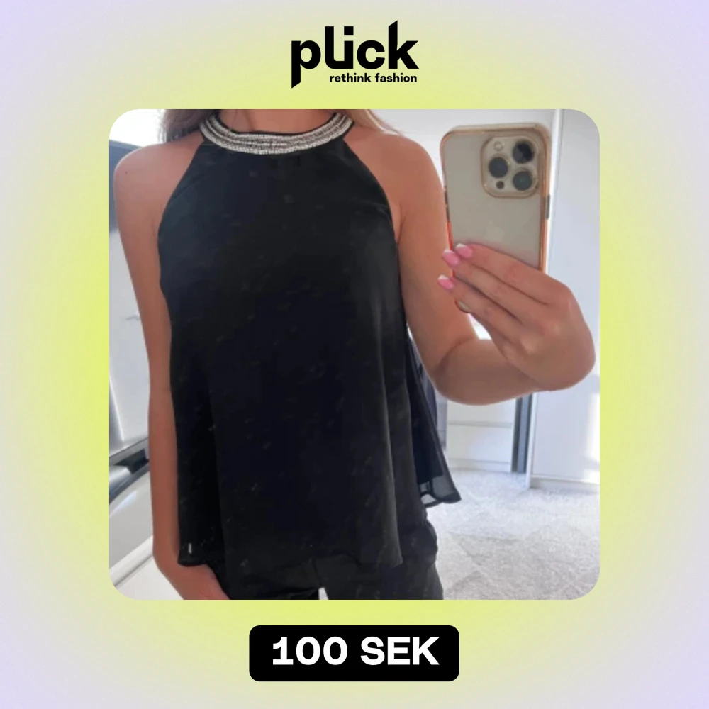 Säljer en super snygg svart halterblus från Vero Moda i storlek S. Blusen har en elegant design med strasshalsband som ger en extra touch. Den är i utmärkt skick och kan kombineras med både byxor och kjolar för en komplett look!