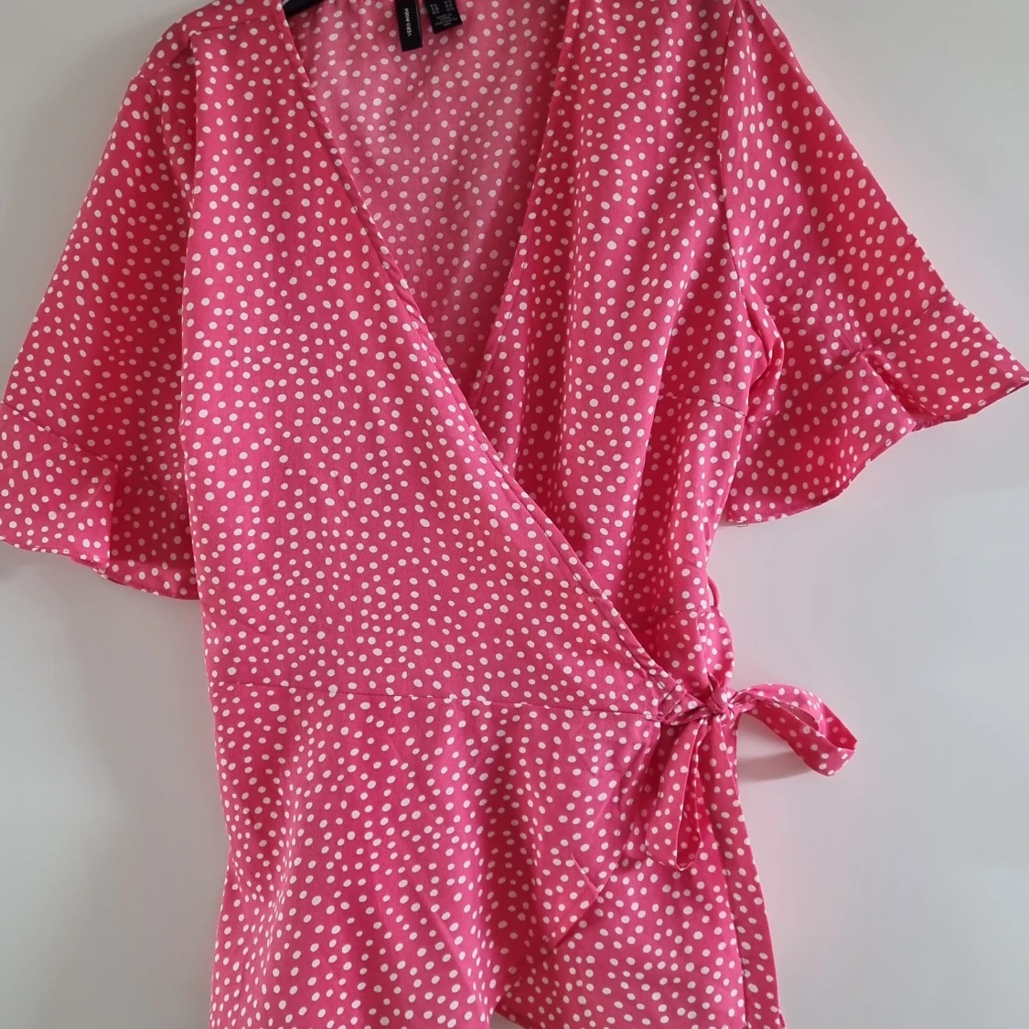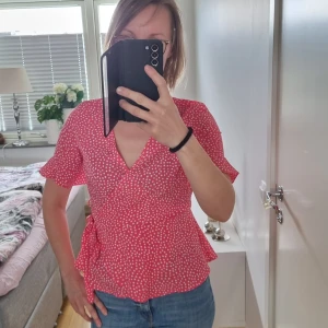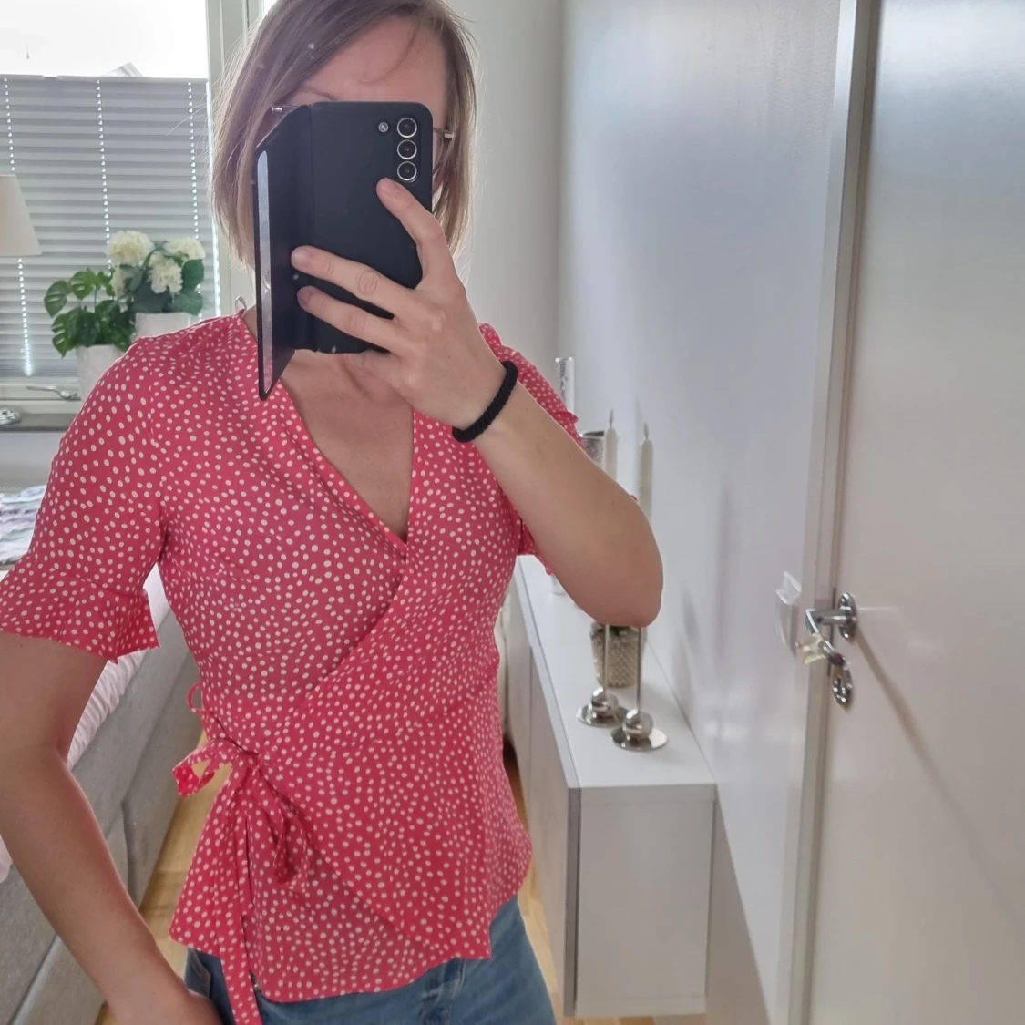 Korallfärgad blus med vita prickar från Vero Moda. Strl xs. Inget att anmärka.