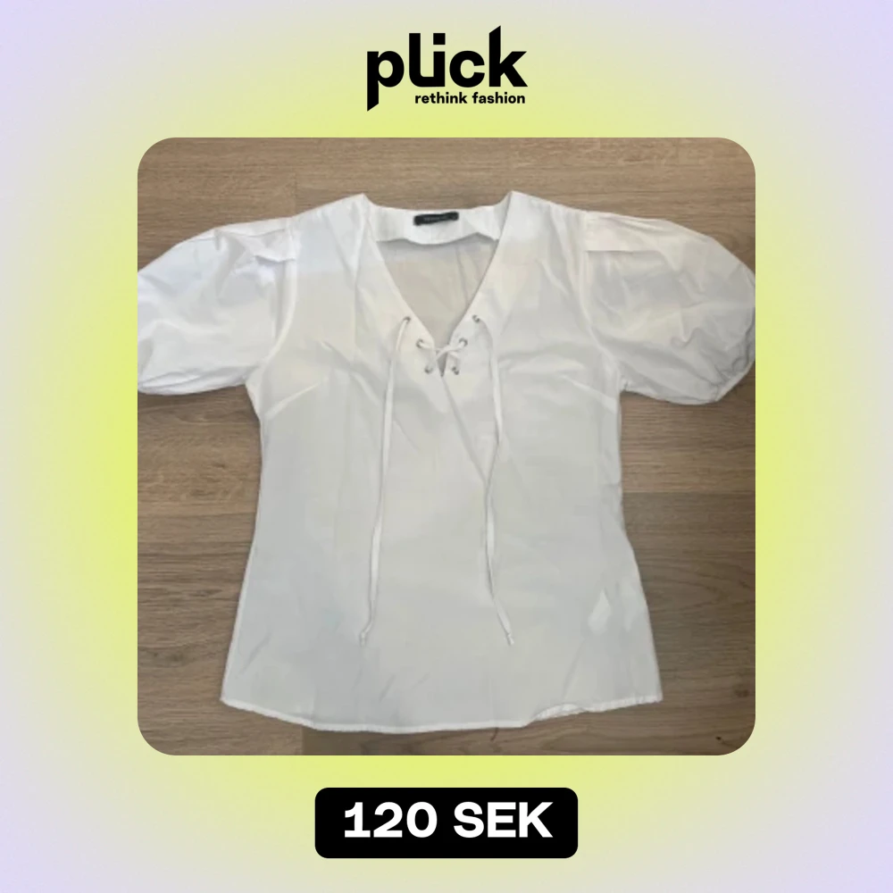 Jätte fin basic blus som aldrig används. Storlek 34. Inget stretchit material men väldigt luftigt och skönt. Vringning och puffiga armar!