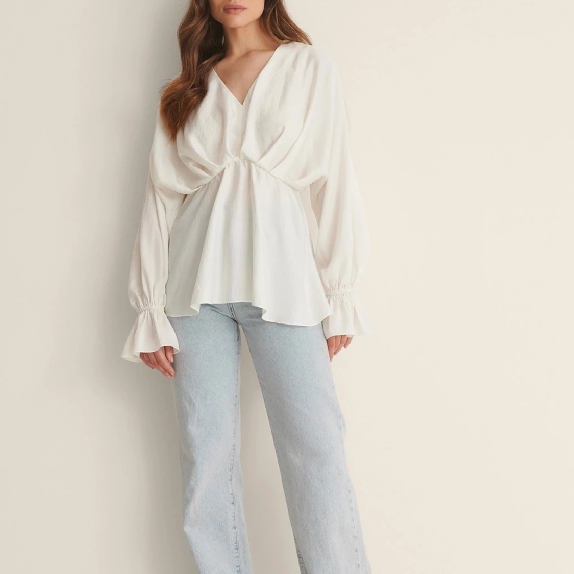 Super fin vit blus från nakd med detaljer, denna kom inte till användning så mycket tyvärr, så pris kan diskuteras. Denna säljs inte i butik längre 🤍