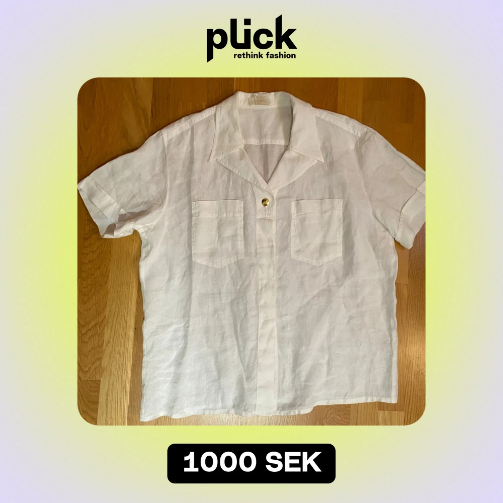 Vit blus i linne i strl 44 från Escada. Endast använd vid ett par tillfällen och är i väldigt fint begagnat skick. Mått Över bröstet: ca 67 cm Längd från axeln och ner: ca 73 cm 100% linne Kommer från ett djur och rökfritt hem.
