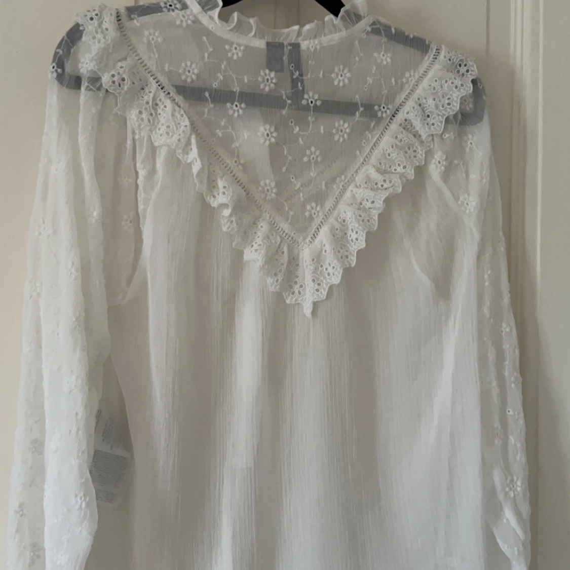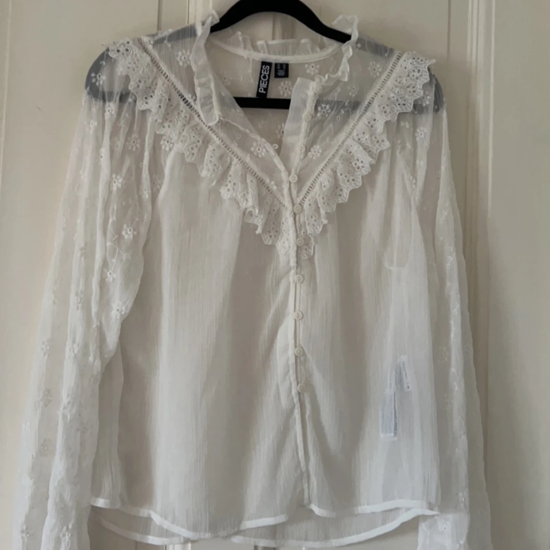 Jätte söt vit genomskinlig blus 💓 Knappast använd, typ 1-2 gånger!!!! Inga defekter, i jätte fint skick 💓