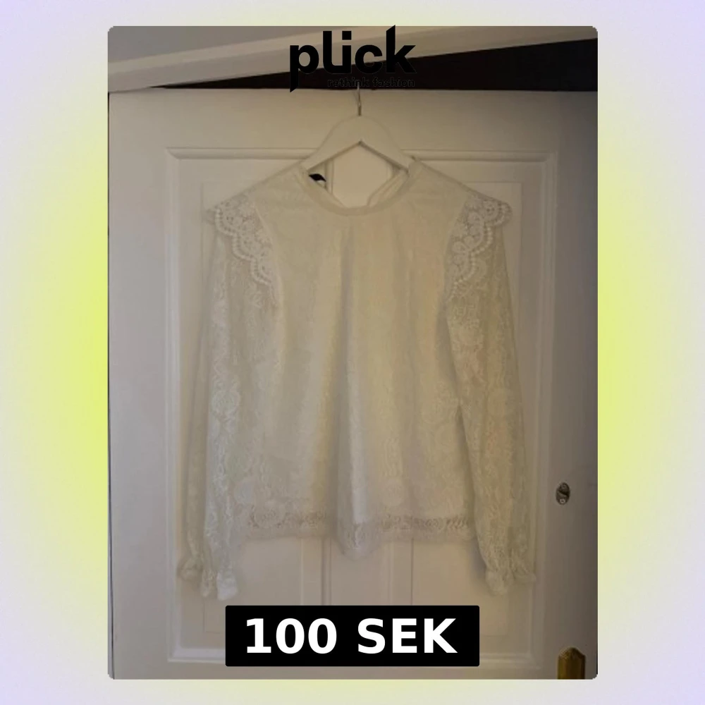 Supersöt vit blus från Pieces i storlek XS, helt i spets med långärmade ärmar och fina volangdetaljer vid axlar och ärmslut. Aldrig använd ❤️