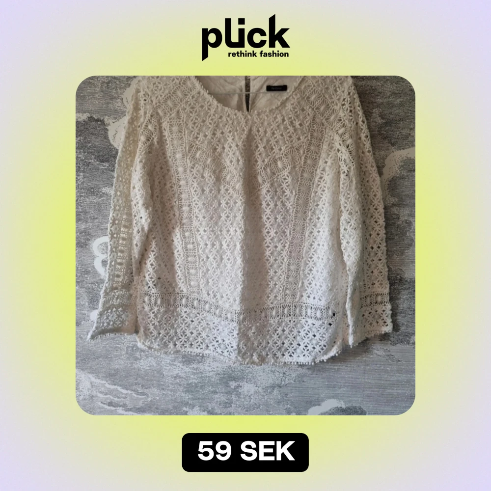 Säljer en superfin vit spetsblus i 100% bomull. Den har ett vackert blommigt mönster och långa ärmar. Blusen är fodrad och känns både luftig och elegant. Passar både till vardags och festliga tillfällen.