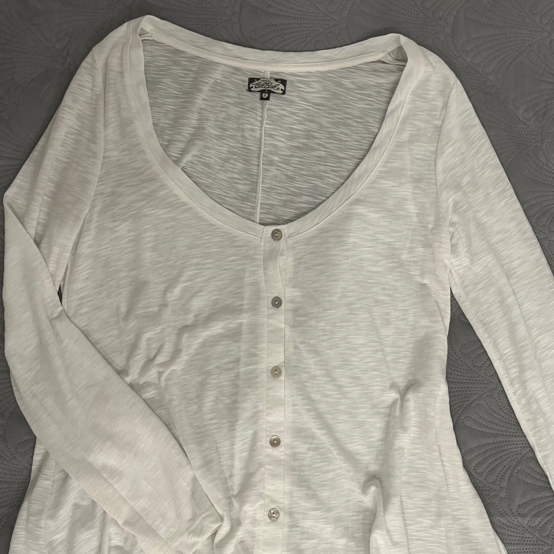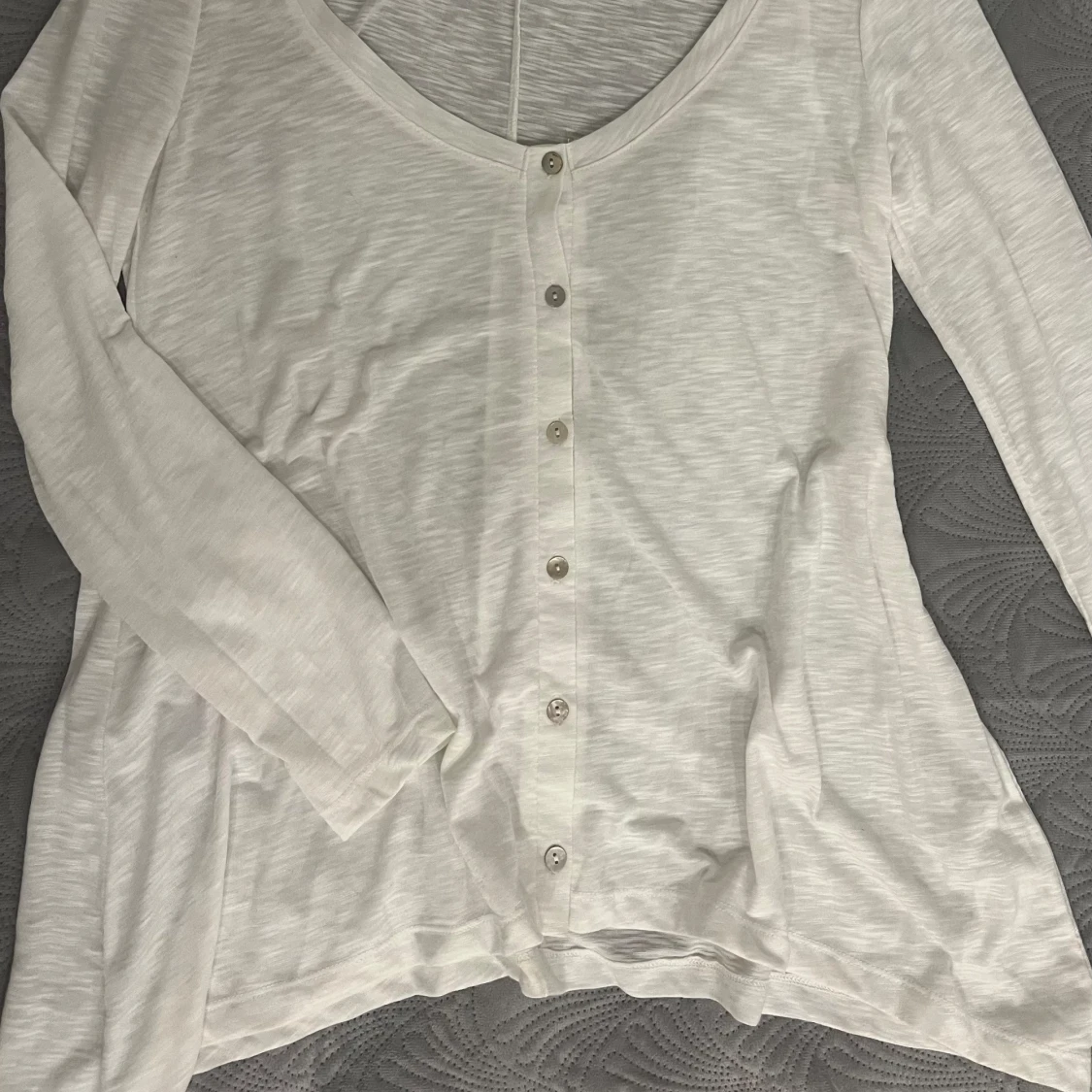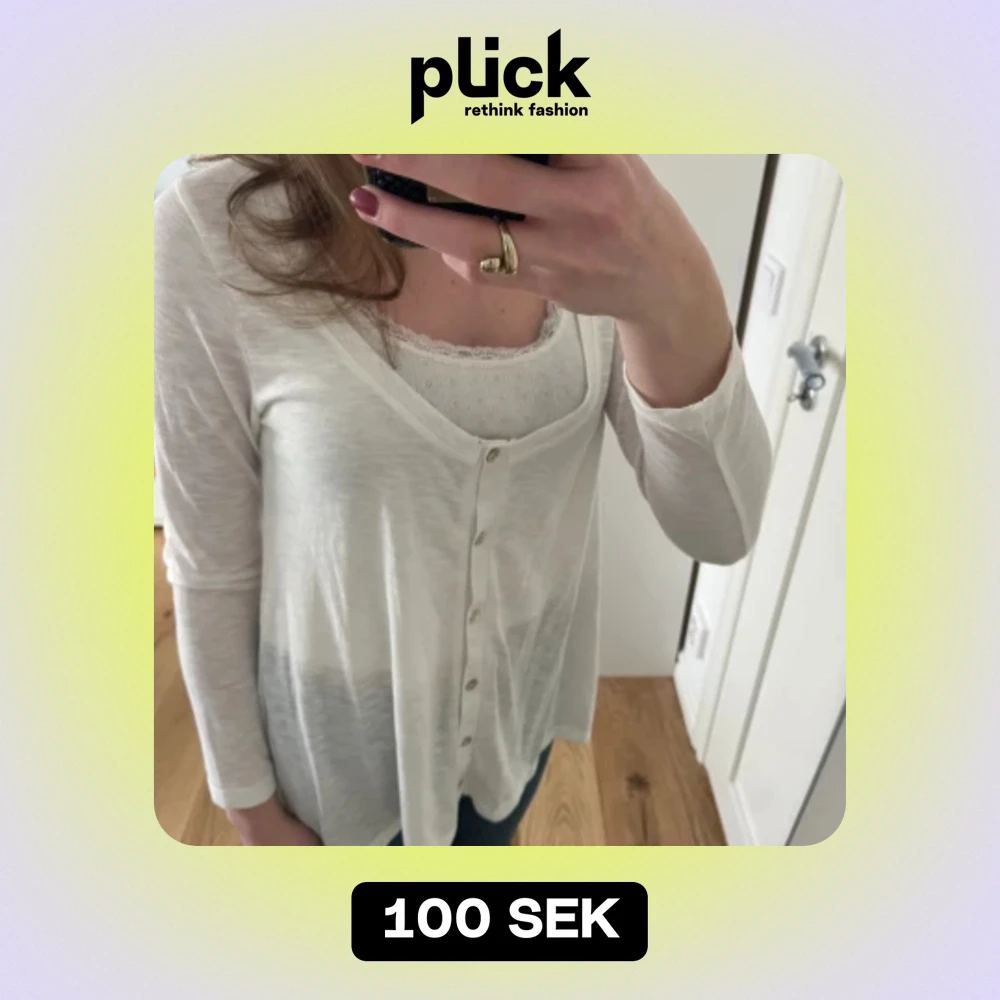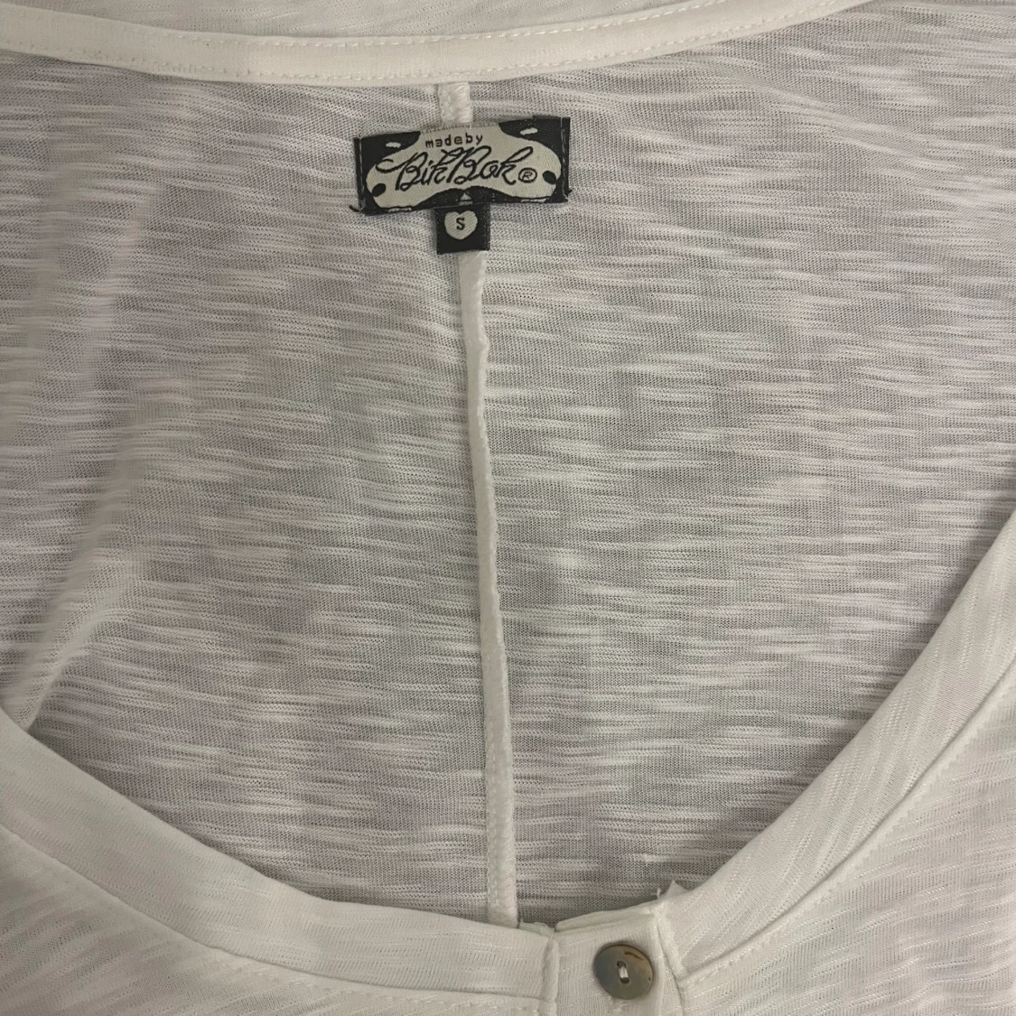 Vit U-ringad BikBok topp, som gĂ„r ut nederst och har knappar lĂ€ngst lĂ€ngden. JĂ€ttebra basicplagg! đ€ Skitsnygg till jeans, aldrig anvĂ€nd. Pris gĂ„r att diskutera đđŒ