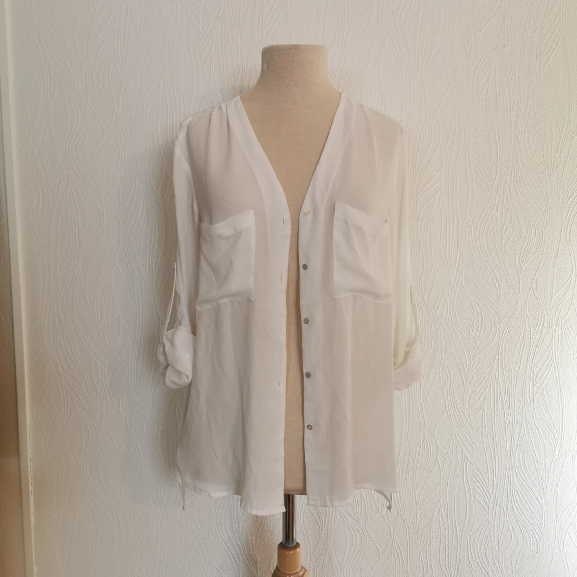 Vit skir blus. Märke: tror H&M (lapp borttagen). Storlek: S/M. Skick: väldigt fint, använd 2-3 gånger. Pris: 80 kronor eller bud. Frakt: Betalas av köparen.
