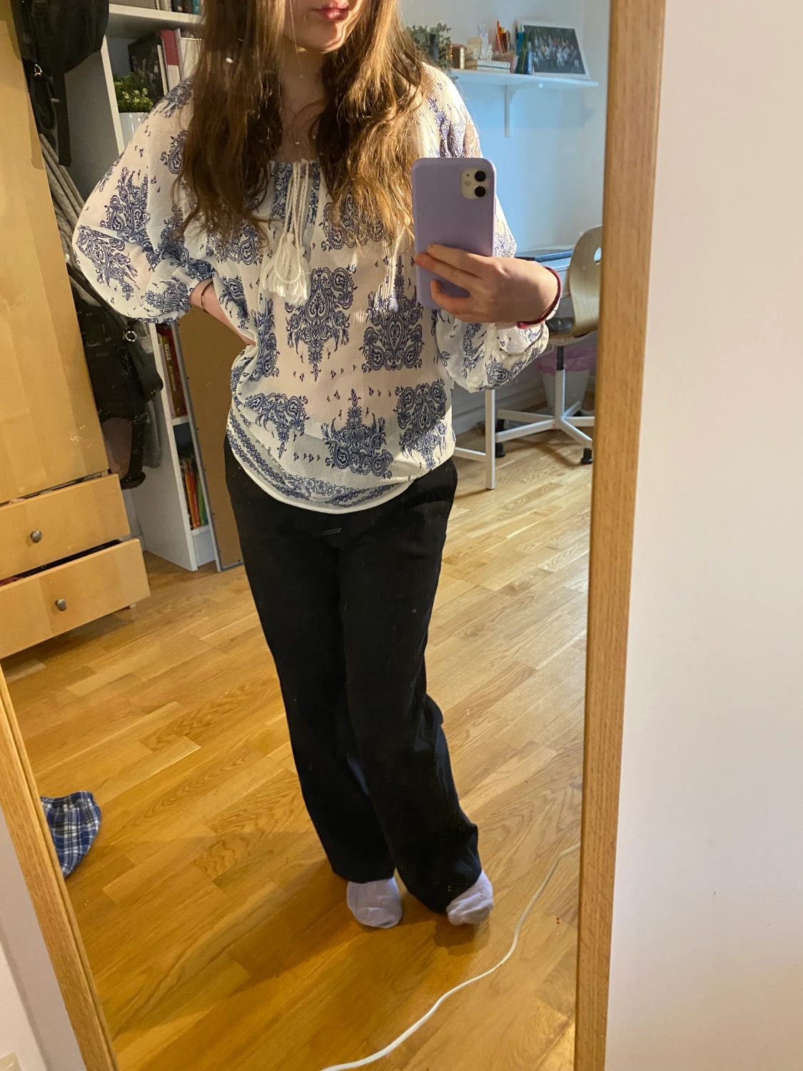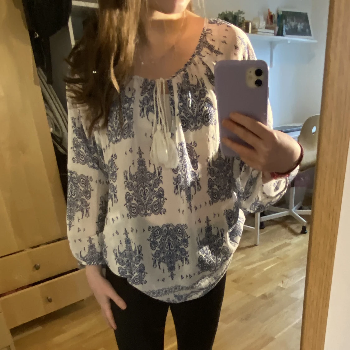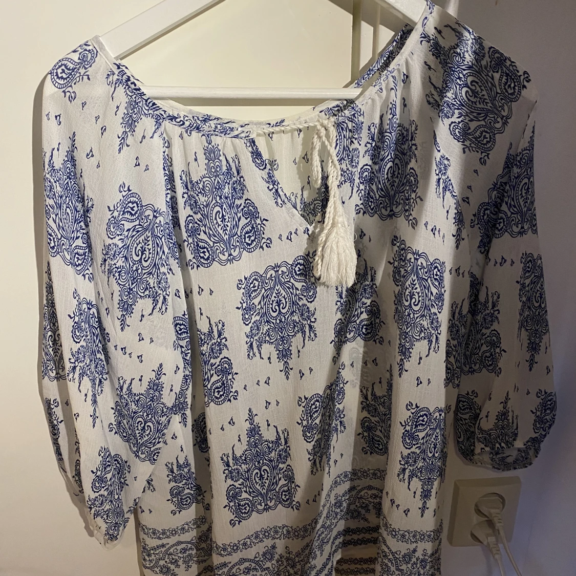 Blå och vit blus med snöre