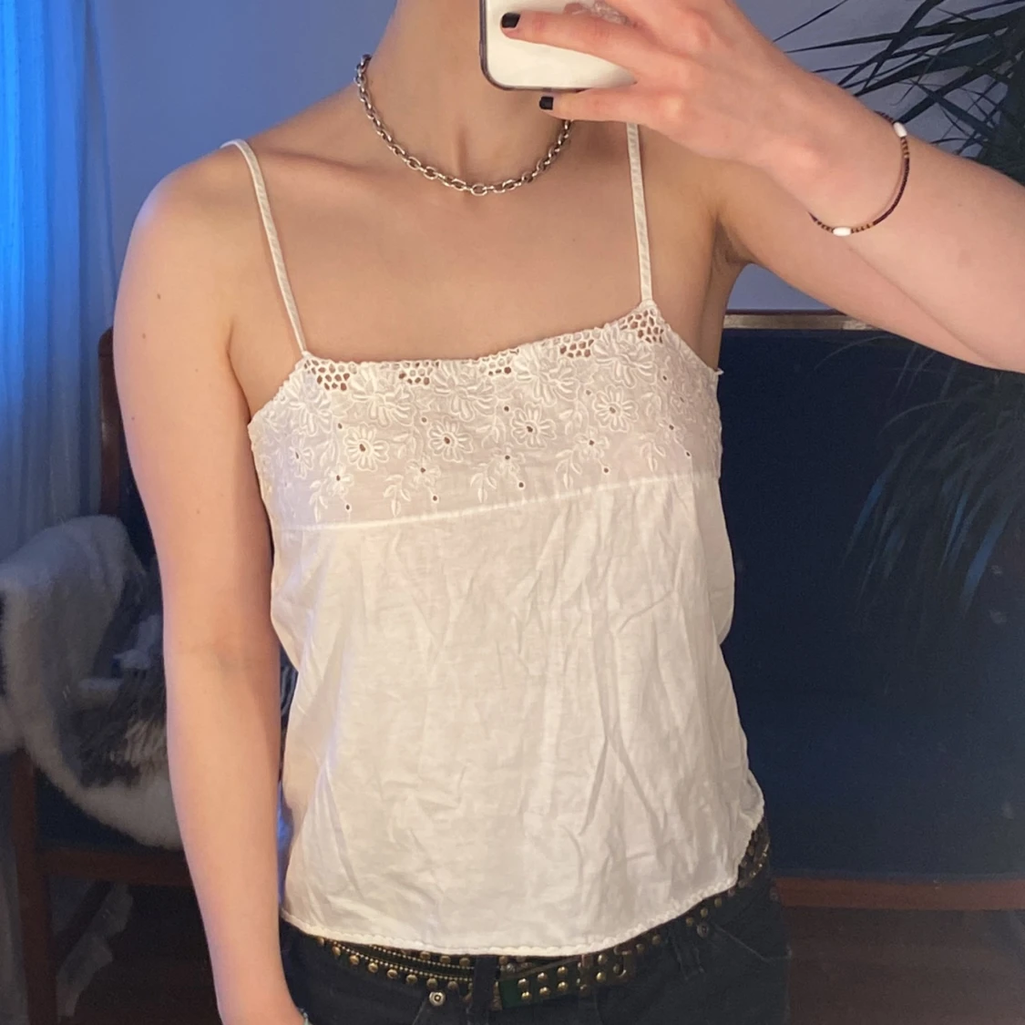 Snyggt vitt linneđ€ Super skönt och mjukt tyg som man inte svettas i. MĂ€rket Ă€r okĂ€nt. Passar S eller XS bra. Köpare betalar fraktđ€