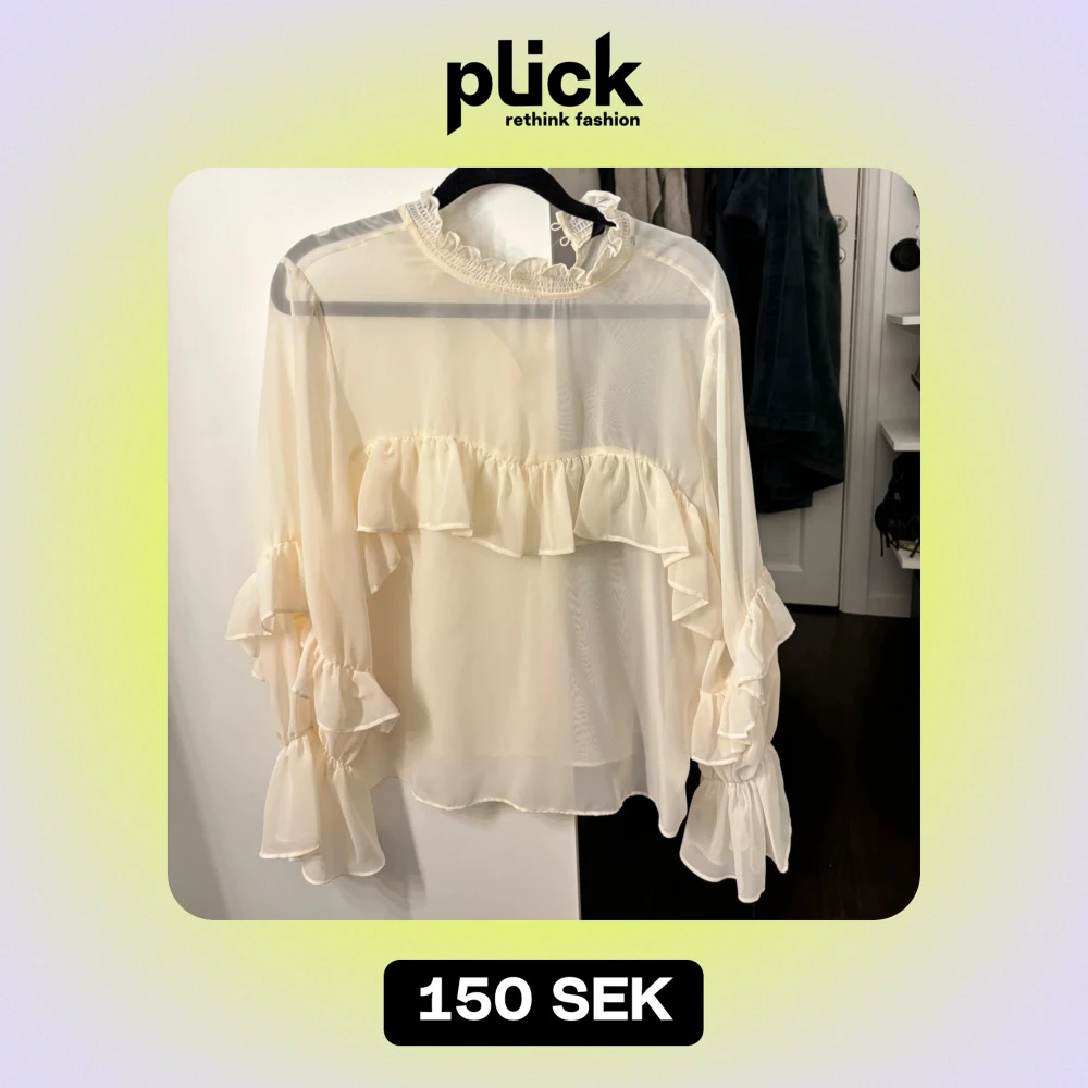 En krämvit volang blus från zara i storlek s! Ser gulare ut på bilden eftersom mina smink lampor är på!💕💕