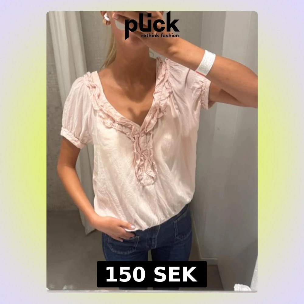 Volang V-neck t-shirt blus med volang detaljer!💓