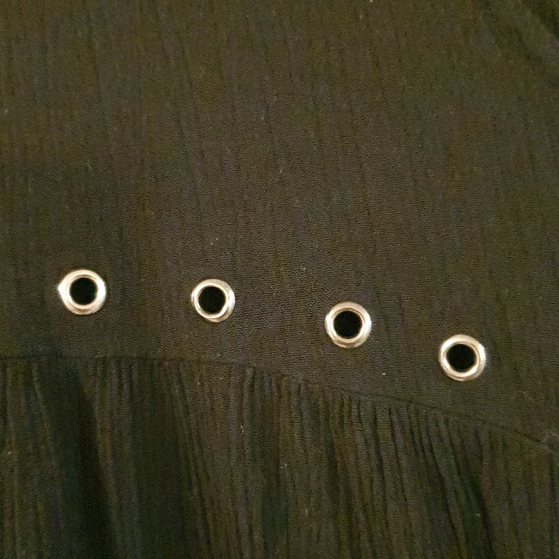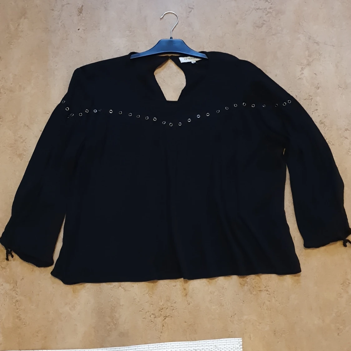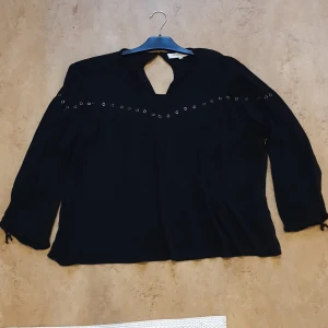 Svart tunn blus som man inte behöver stryka och som har nitar både fram och bak. Storlek XL.