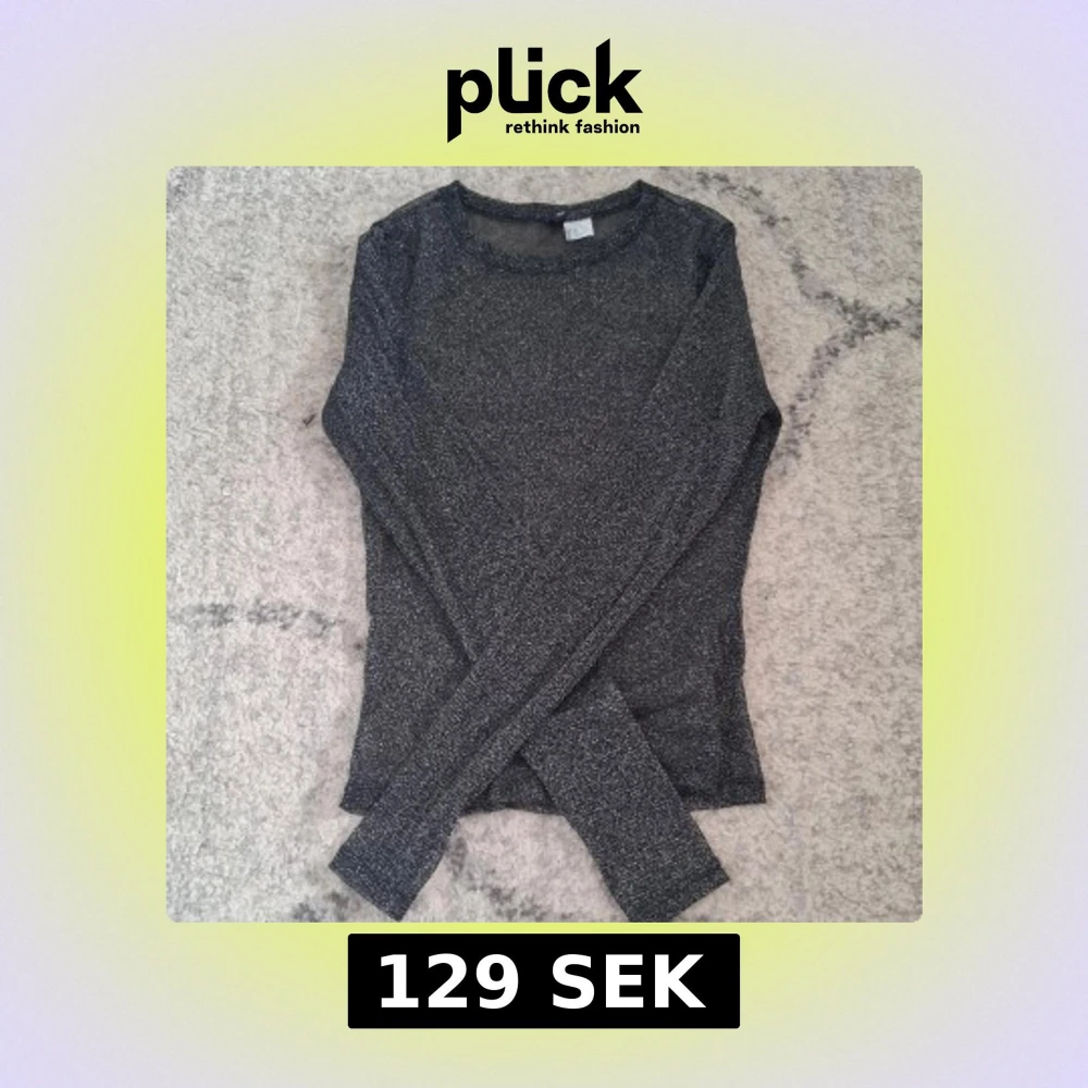 Svart glittrig topp med långa ärmar. Materialet är genomskinligt. Tyget är stretchig. Skulle säga att den passar xs och s. Tröjan andvänd 1gång.