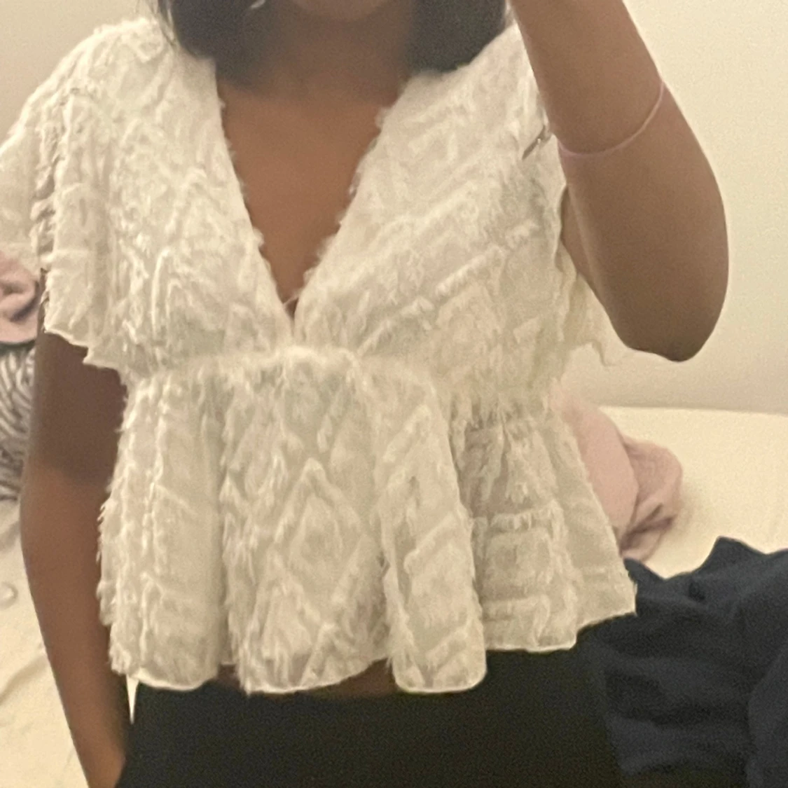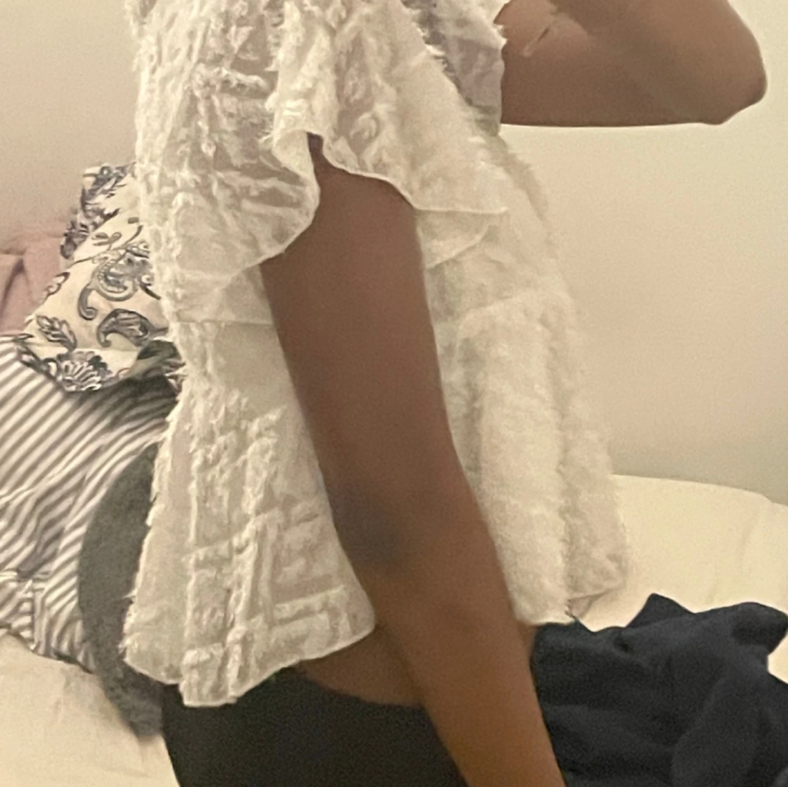 Hej! Säljer denna vita blusen🫶🏽i fint skick så jag nästan inte använt den
