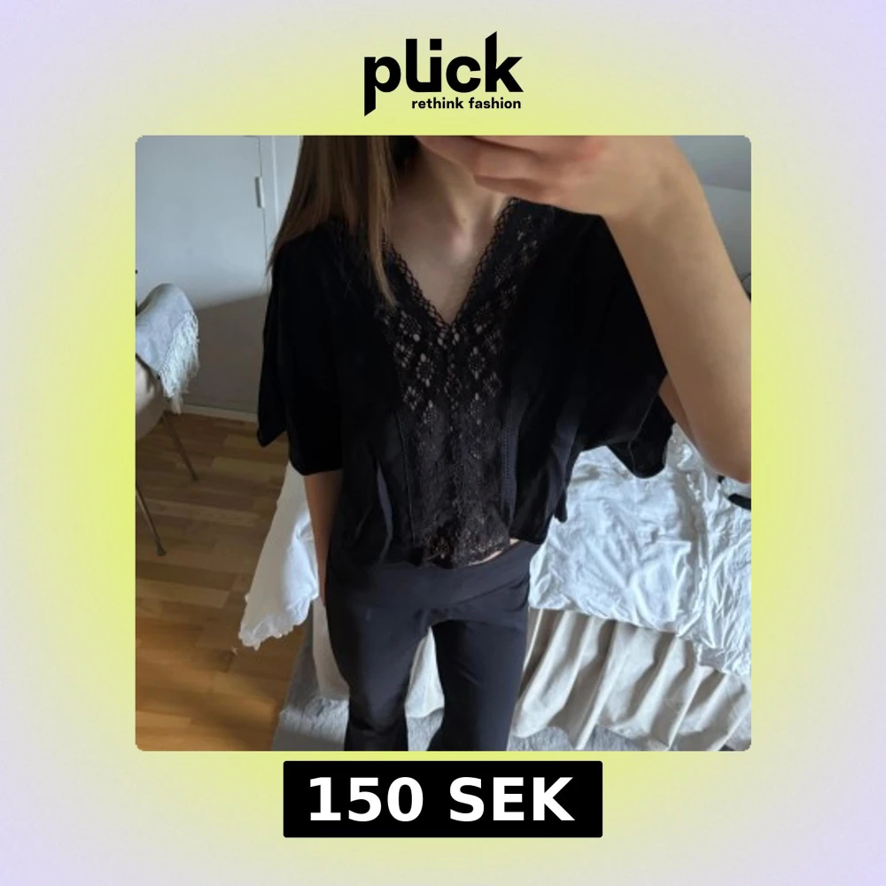 Svart blus med spetsdetaljer