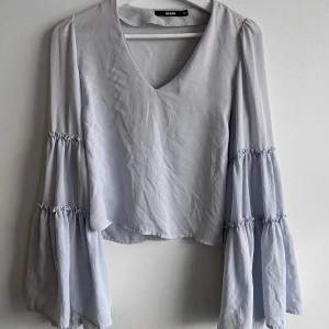 Jätte fin topp från Bikbok. Storleken är XS och ärmarna är utsvängda med volanger på armarna. Bra kvalitet.