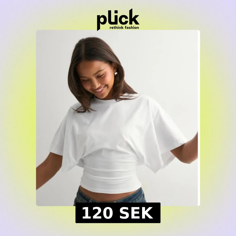 Säljer en vit croppad topp med breda, korta ärmar och rund hals. Toppen har en tight passform över midjan. Säljer då jag inte använder den. Helt ny