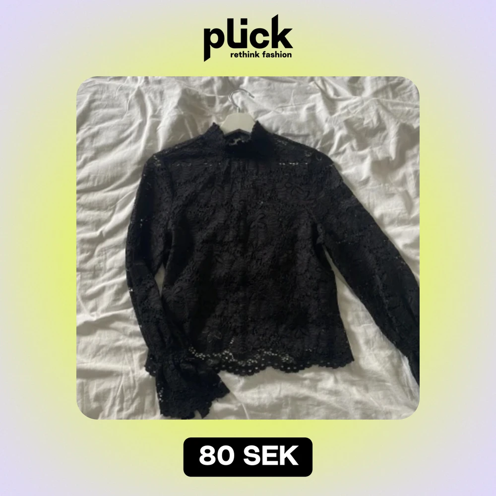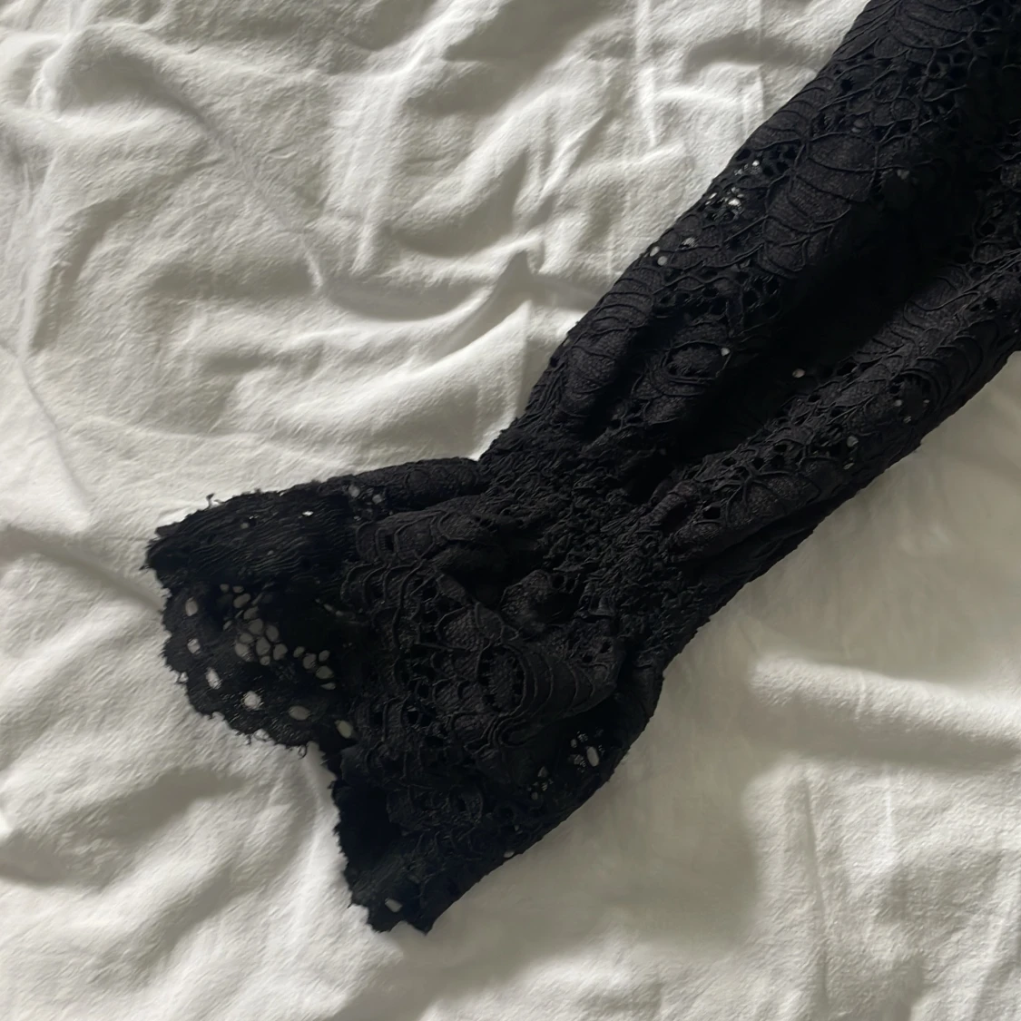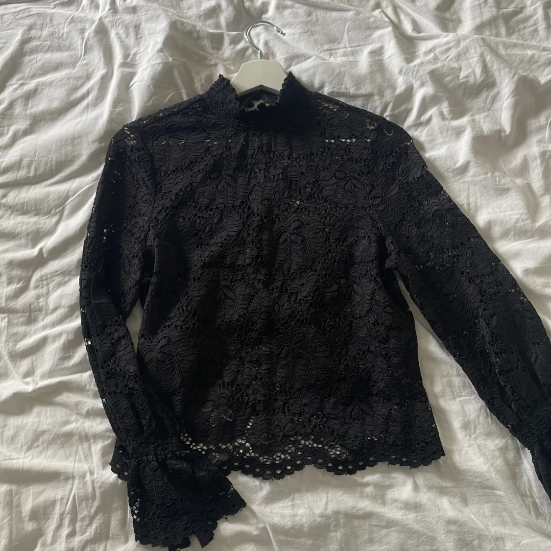 Svart spets blus/tröja från zalando märke pieces i storlek xxs men är som en xs den är Stretchig i kragen och över allt. 💗