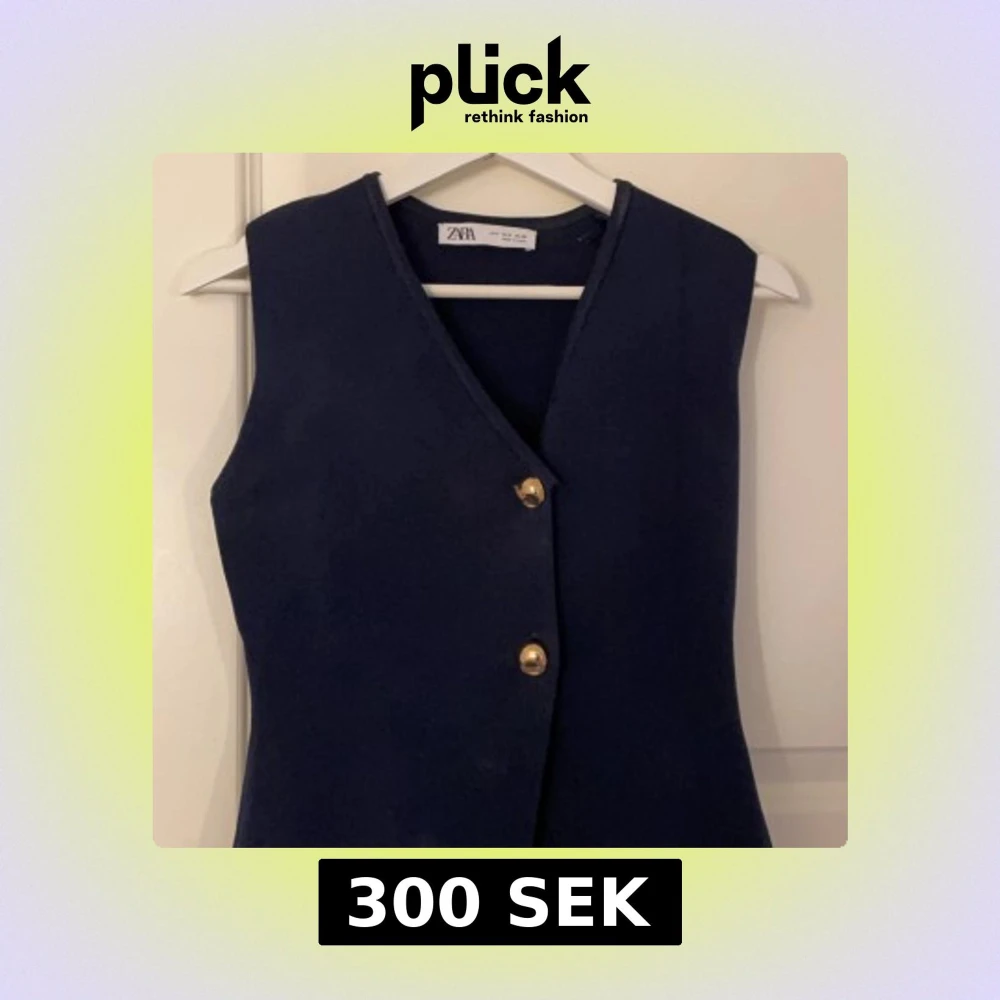 Snygg mörkblå väst från Zara med två guldknappar framtill. Använd ca en gång💕