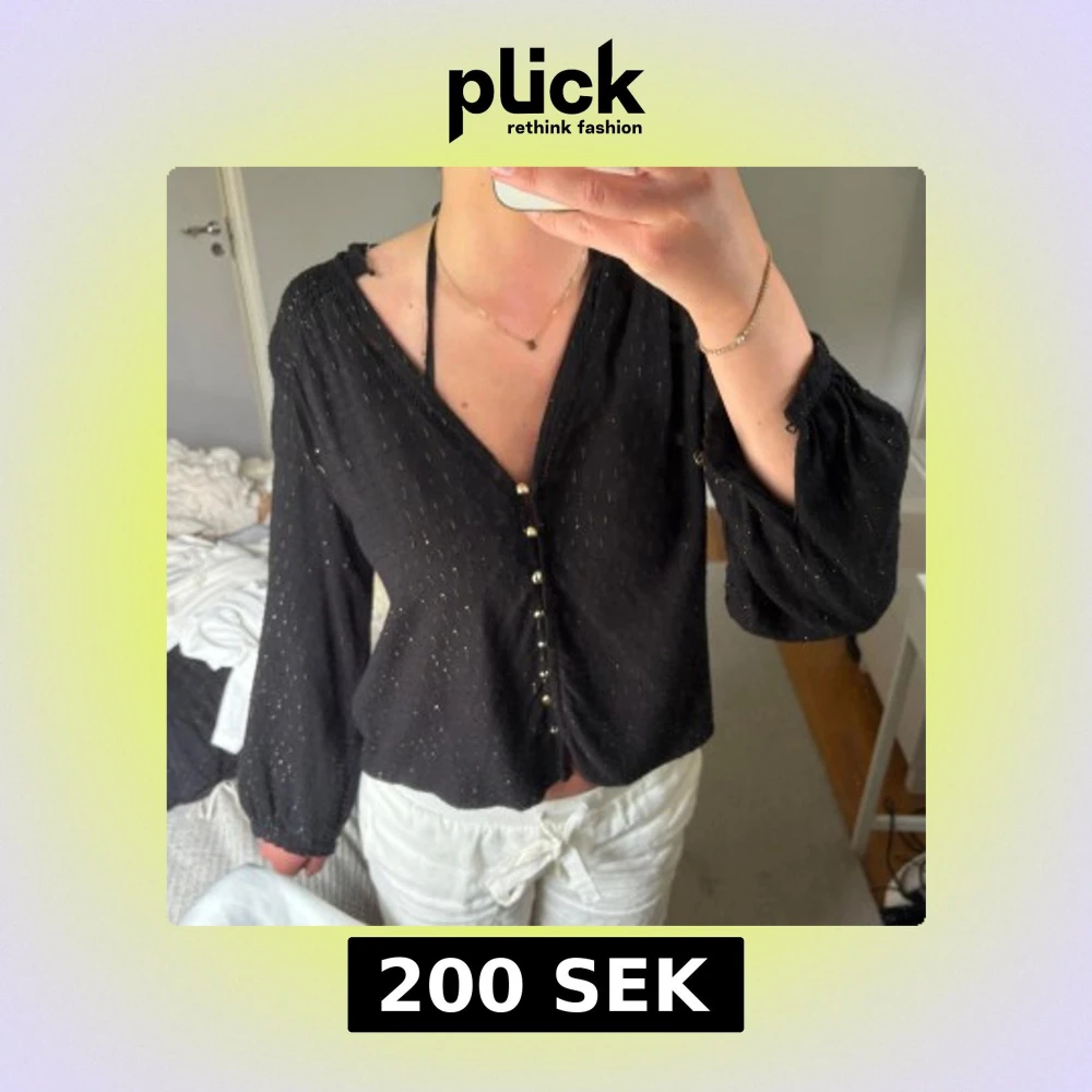 Säljer en svart blus med guldiga detaljer och guldiga knappar framtill 🩷